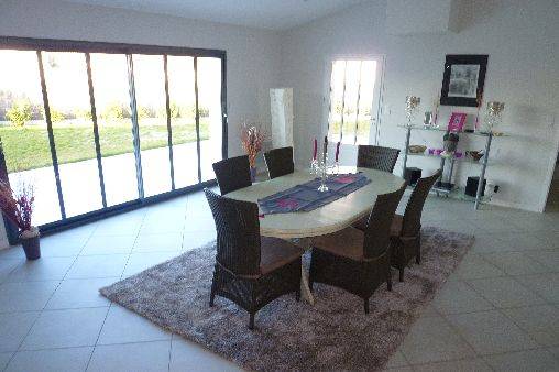 Maison réthaise neuve (avril 2008) de 130 m2 habitables avec beau jardin de 300 m2 entièrement clos ,terrasse de 60m2 et 2 auvents. Séjour 50 m2 Décoration soignée.Literies haut de gamme et ameublement neuf. 3 chambres dont une avec salle d'eau. Lits de 160 dans les chambres d'adultes et 2 lits simples +1 lit gigogne dans la chambre d'enfants. Placards aménagés (étagères et penderie)dans chaque chambre. 2 wc indépendants.