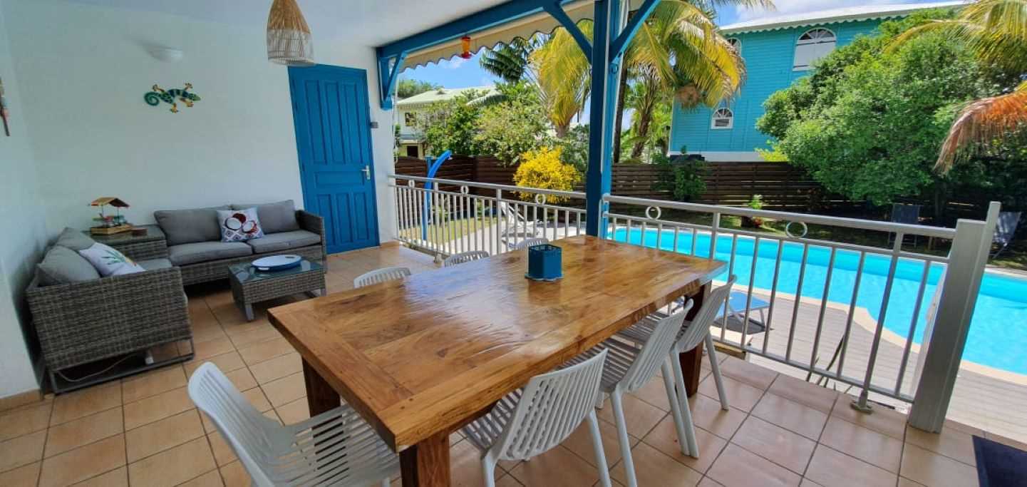 La villa paradis bleu située sur un terrain entièrement clôturé vous offre un moment de détente avec sa piscine 10m*4m sécurisée pour les enfants , sa terrasse spacieuse et son coin salon.