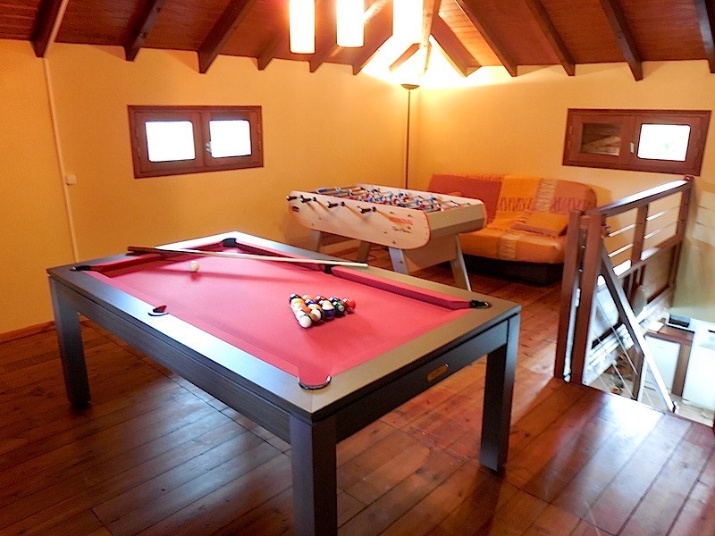 Sur la mezzanine se compose une salle de jeux climatisée avec billard et babyfoot, un clic clac pour 2 personnes.
