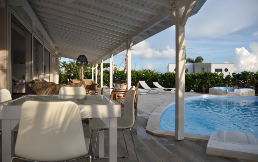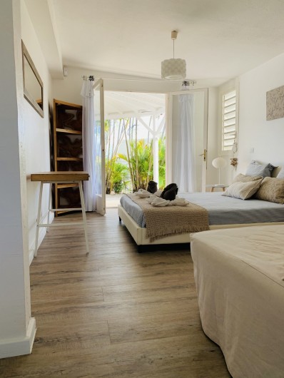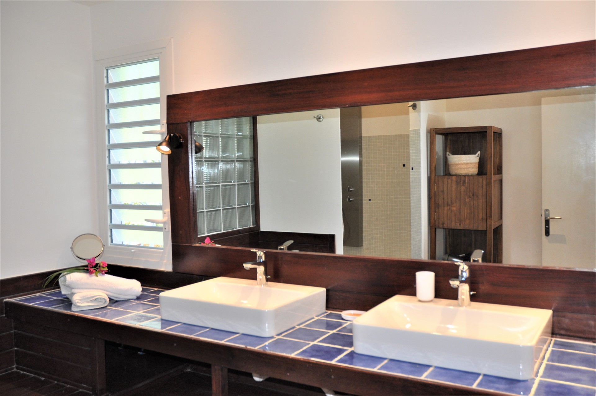 Belle Villa créole de standing sur un terrain de 800 m2 entièrement clôt, située à le Gosier lieu dit Mare gaillard Petit Havre, au fond d'une impasse au calme avec une vue mer magnifique. la maison (188m²) possède une grande pièce de vie avec cuisine équipée et salon, 5 chambres avec 5 grands lits , 4 salles d'eau et 3 WC, et une douche extérieure dans la végétation, un jardin avec piscine et jacuzzi ainsi qu'une grande terrasse qui longe toute la maison coté piscine pour profiter de l'extérieur tout en étant protégé. 2 places de parking dans le jardin, et possibilité de