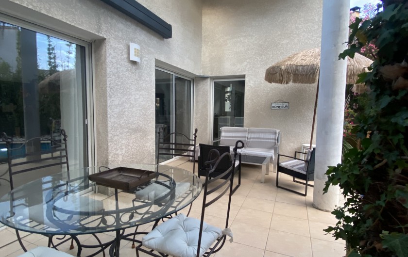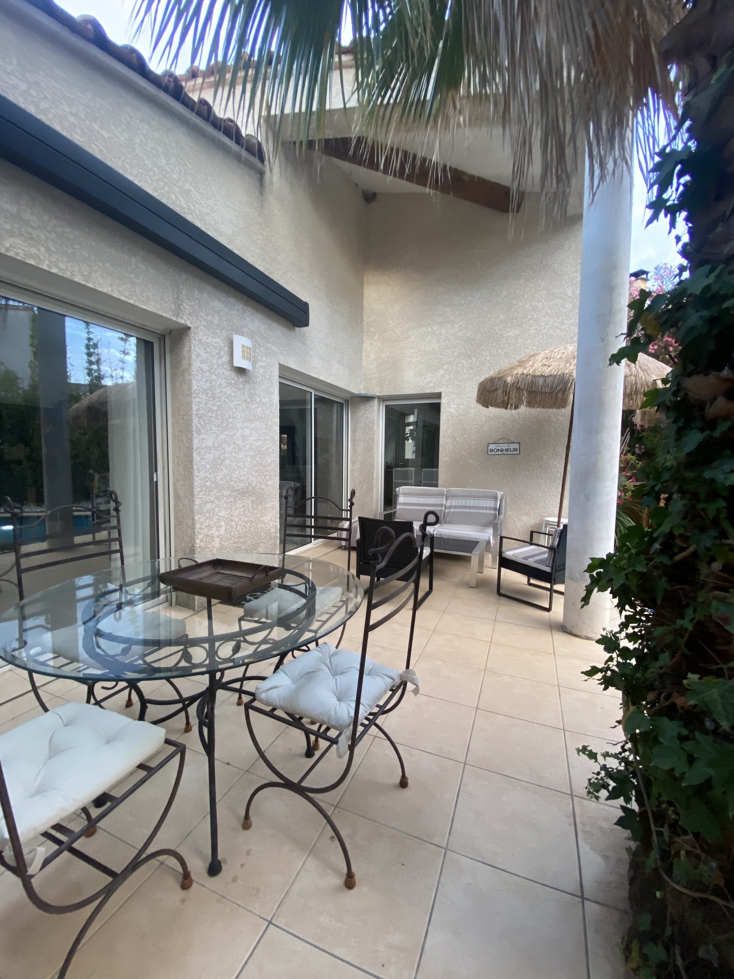 Pour votre confort, la villa est climatisée, la terrasse est aménagée avec du mobilier de jardin : grande table, chaises, canapé, fauteuils, transats et parasols et de 2 barbecues ( charbon à bois ) mis à disposition...