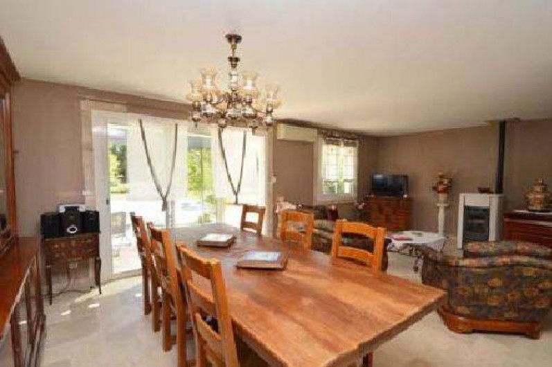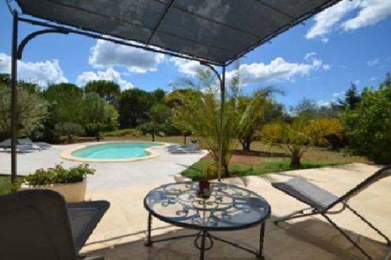 Une piscine privée forme 'haricot' de 4m x 8m sécurisée par une alarme, chaises longues. Vous avez 2 terrasses couvertes : l'une étant le coin repas pour 6 personnes, avec un