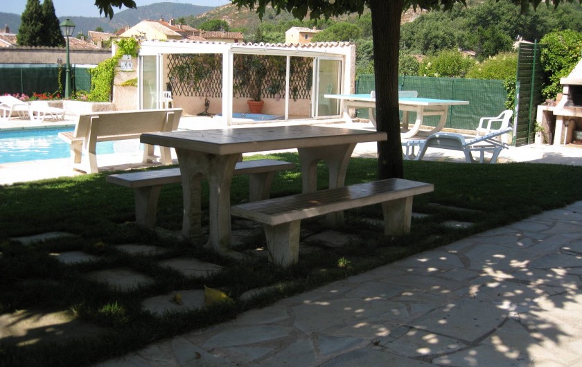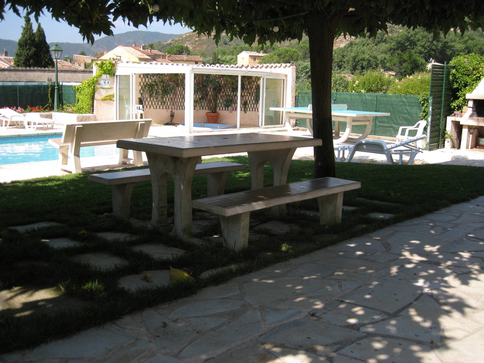 Piscine 10 x 5 couverte par UN ABRI COULISSANT AZENCO dégageant en totalité l'accès de la piscine, et SPA privés (PISCINE et SPA JACUZZI chauffés d'Avril à Octobre, par PANNEAUX SOLAIRES et ABRI TELESCOPIQUE, plus réchauffeurs électriques si besoin, protégés par une barrière métallique aux normes de protection pour enfants de moins de 5 ans avec un portillon à fermeture automatique), SPA dans sa véranda (jacuzzi 4 personnes), jeux de boules, table de ping-pong, douche fermée et wc extérieurs de jardin, local fermant à clé avec lave-linge et où vous pourrez aussi garer vos vélos, motos, planches à voiles. Tout ce qu’il faut pour passer des vacances agréables.Parking privé pour 4 voitures.