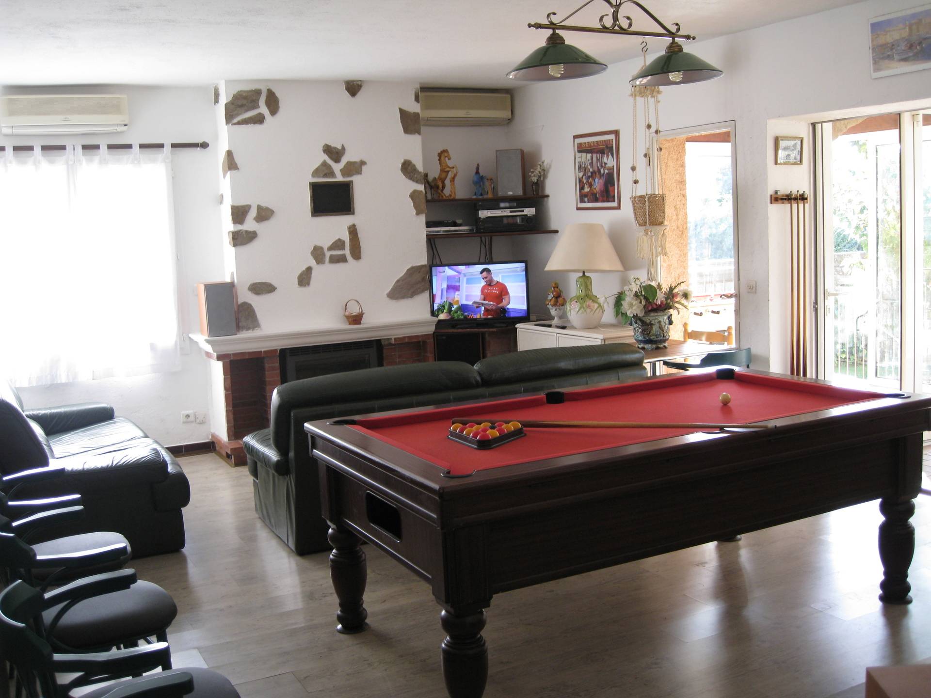 collines environnantes, salon climatisé avec billard Américain - baby-foot de tournoi - chaîne HI-FI - lecteur CD et DVD - télévision TNT avec Satellite Astra - cuisine entièrement équipée - salle de bains avec wc, lavabo et bidet - salle de douche avec lavabo - et un wc Séparé.