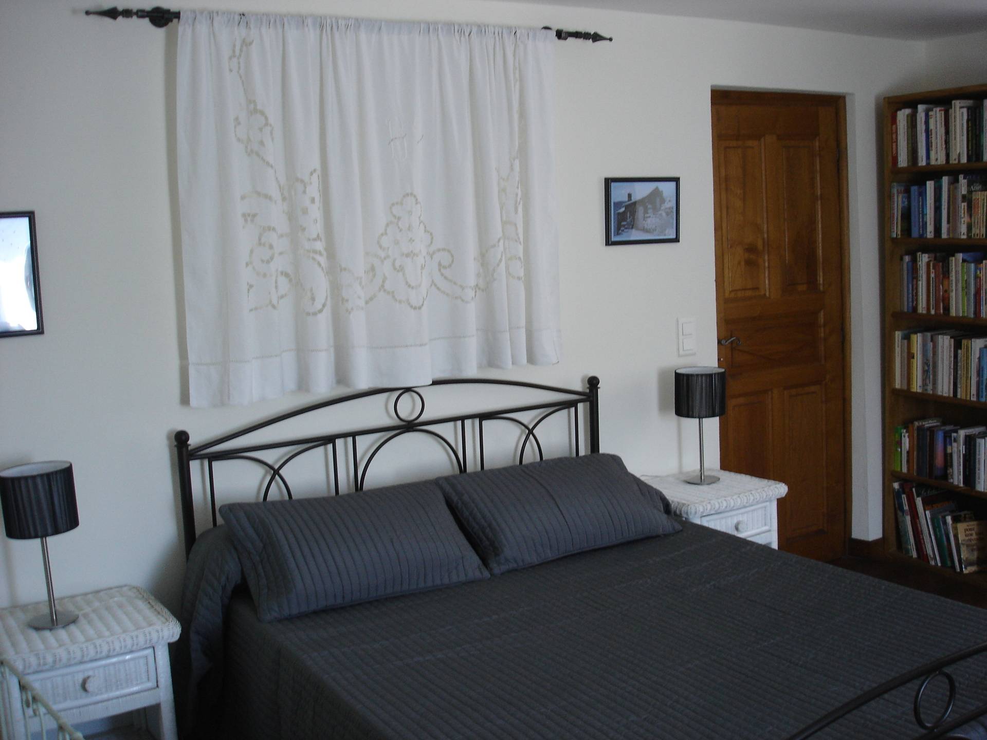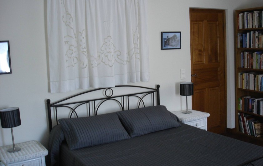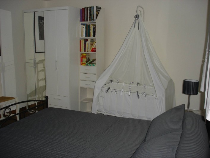 chambre de 18 m2 comprenant un lit en 140, un lit en 90 (équipés de couvertures), et un lit bébé/petit enfant. Une salle d'eau avec douche (baignoire pour bébé), un WC indépendant et lave linge. Chauffage électrique dans toutes les pièces et poêle à bois dans le salon. La maison est ouverte à la location toute l'année.
