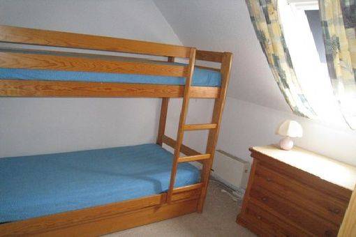 La maison dispose d'un jardin et a une mitoyenneté. Elle se compose au rez de chaussée d'un salon séjour, d'un coin repas et d'une cuisine équipée. A l'étage elle se dispose de 2 chambres, l'une (chambre parents) avec un lit double, l'autre (chambre enfants) avec 2 lits superposés et un lit gigogne. La salle de bain, avec lavabo et baignoire, se