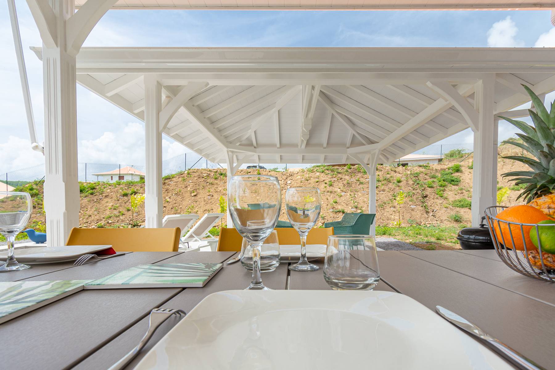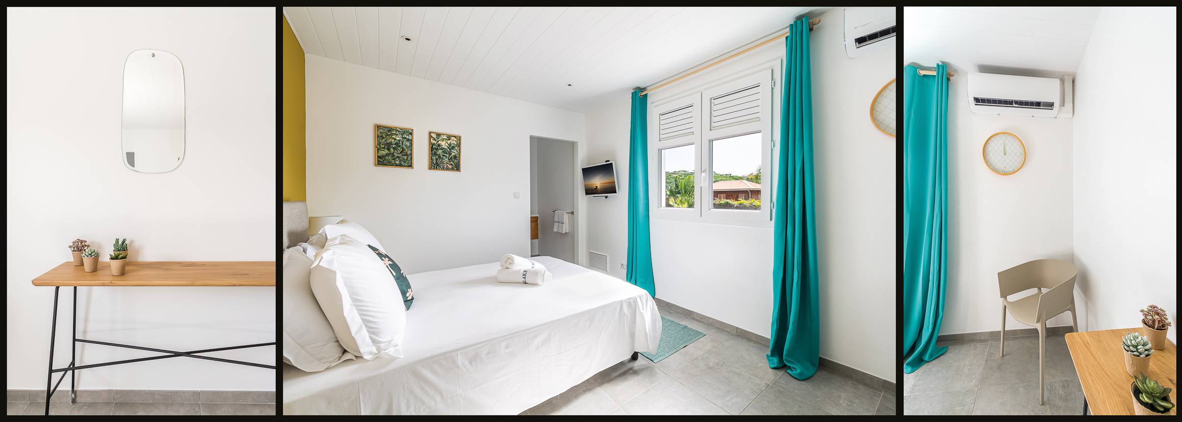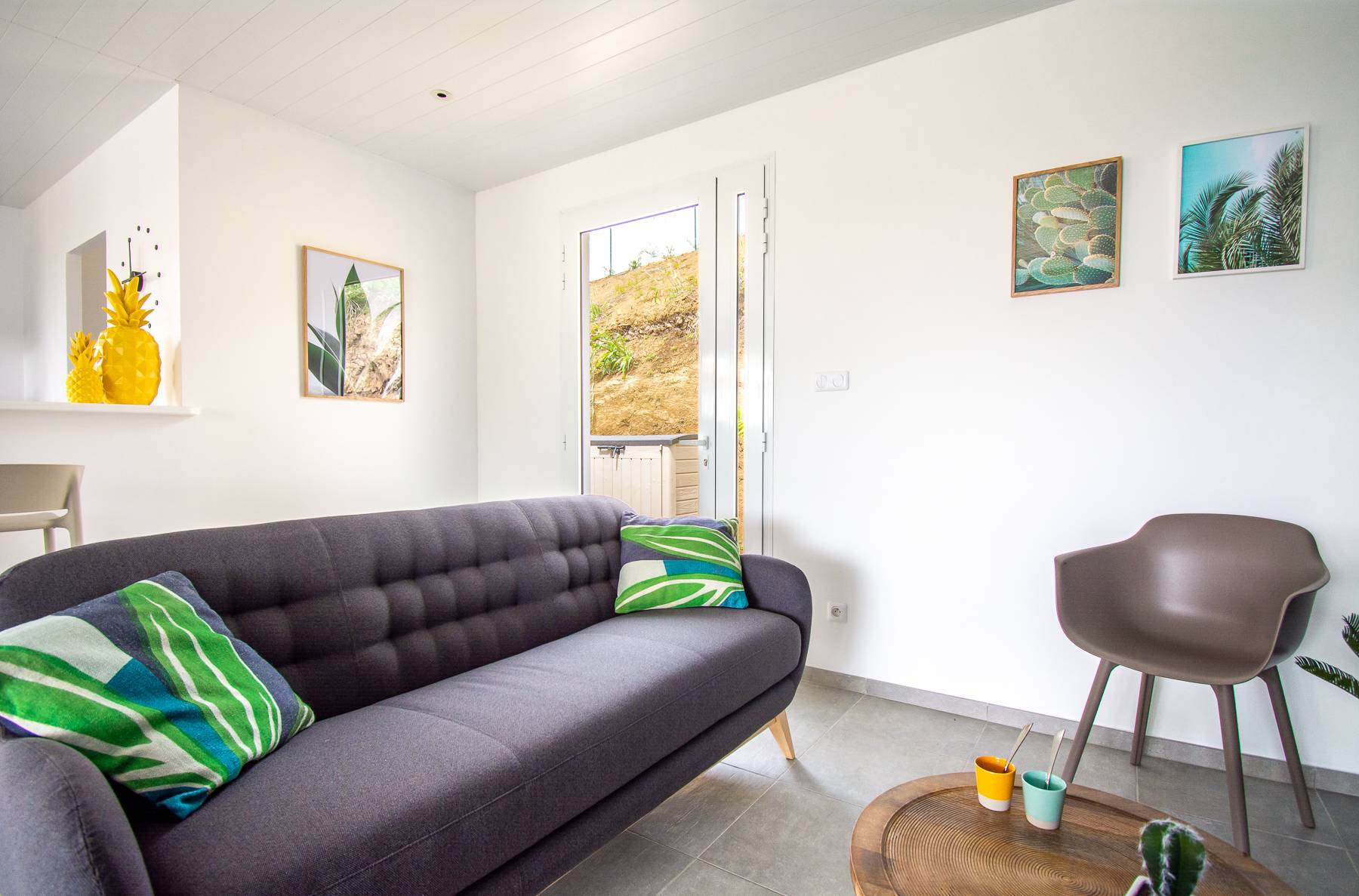 Au cœur d'un lotissement sécurisé, facile d'accès et à 5 minutes de la magnifique plage de Pointe Faula, la Villa Flamboyant bénéficie d'un cadre rare et d'une vue plongeante sur la campagne .