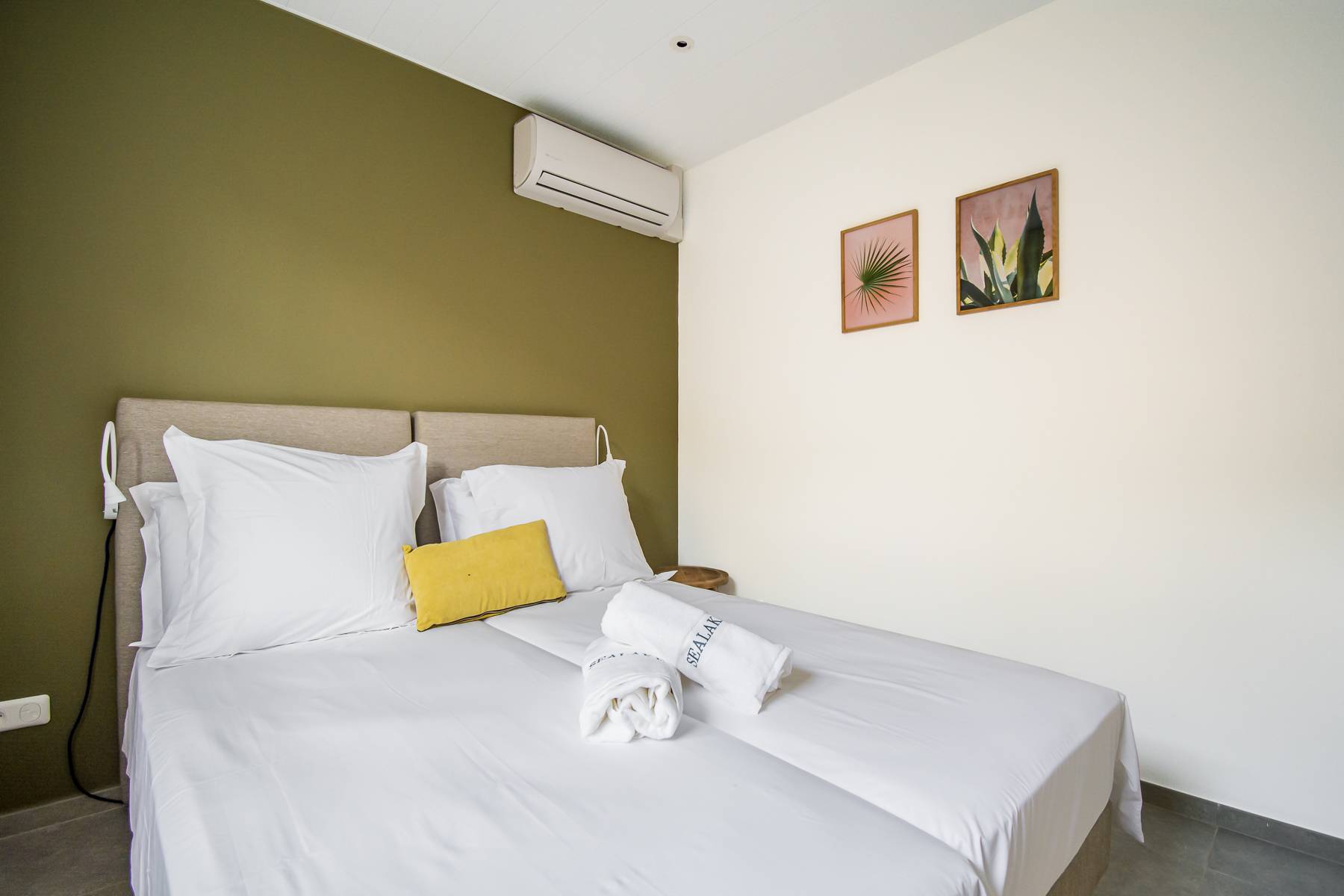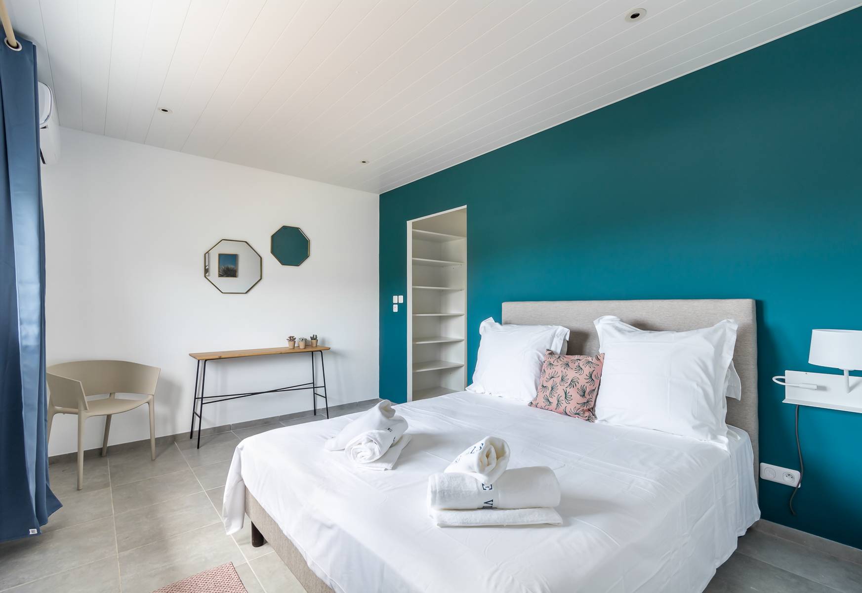 Élégante et contemporaine, elle comporte 3 chambres climatisées avec dressing, 2 salles d'eau et 2 WC pour accueillir jusqu'à 6 hôtes .