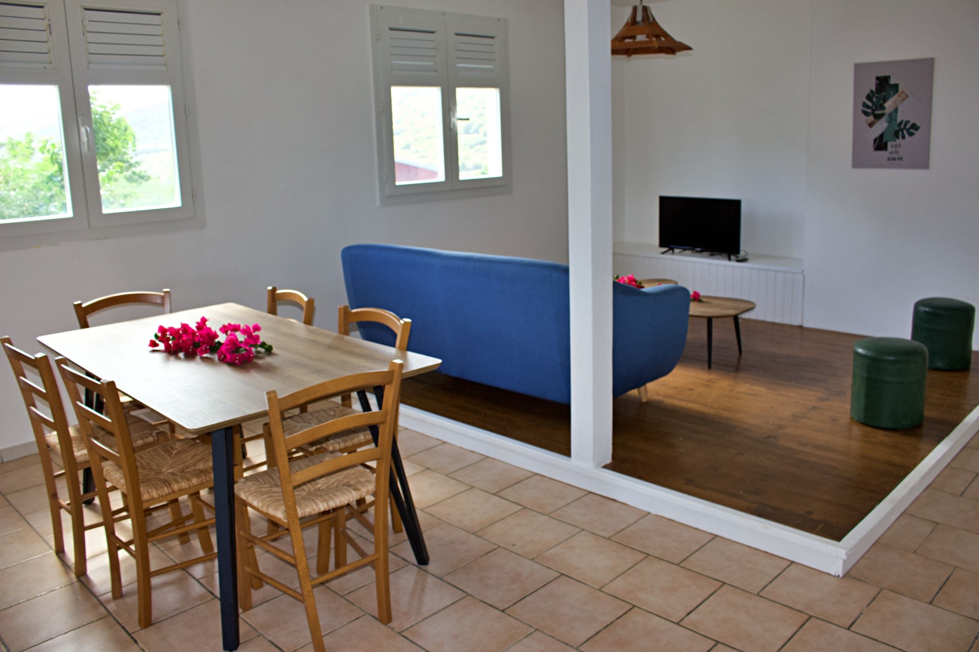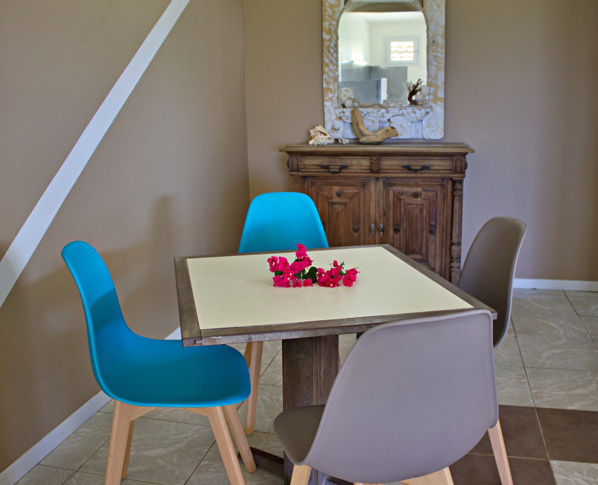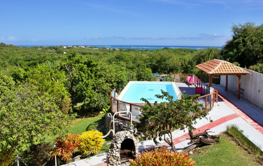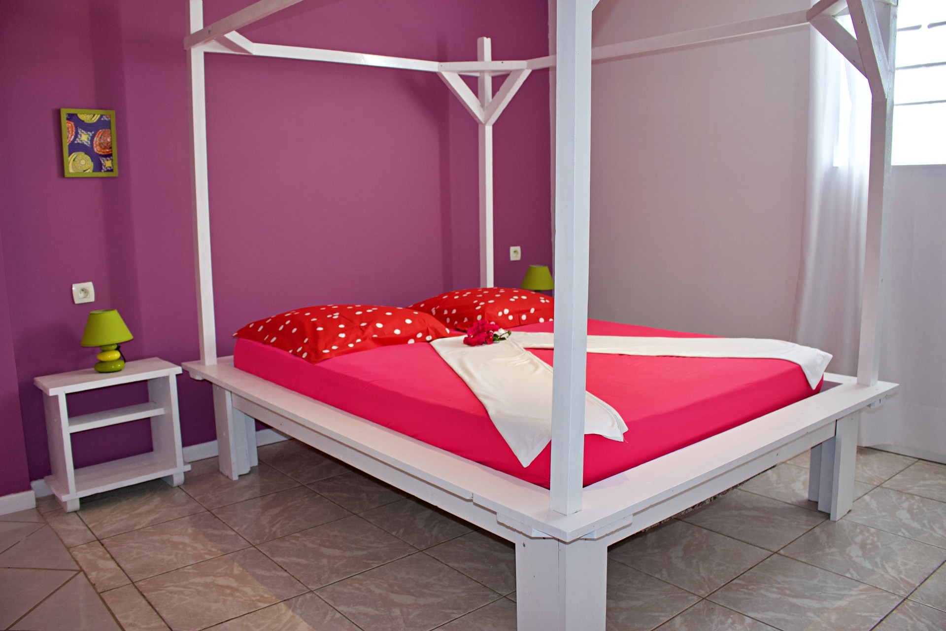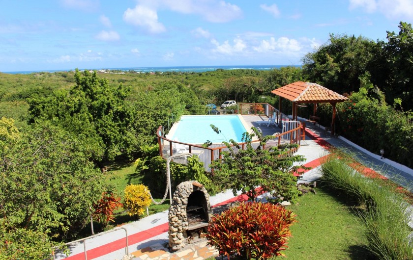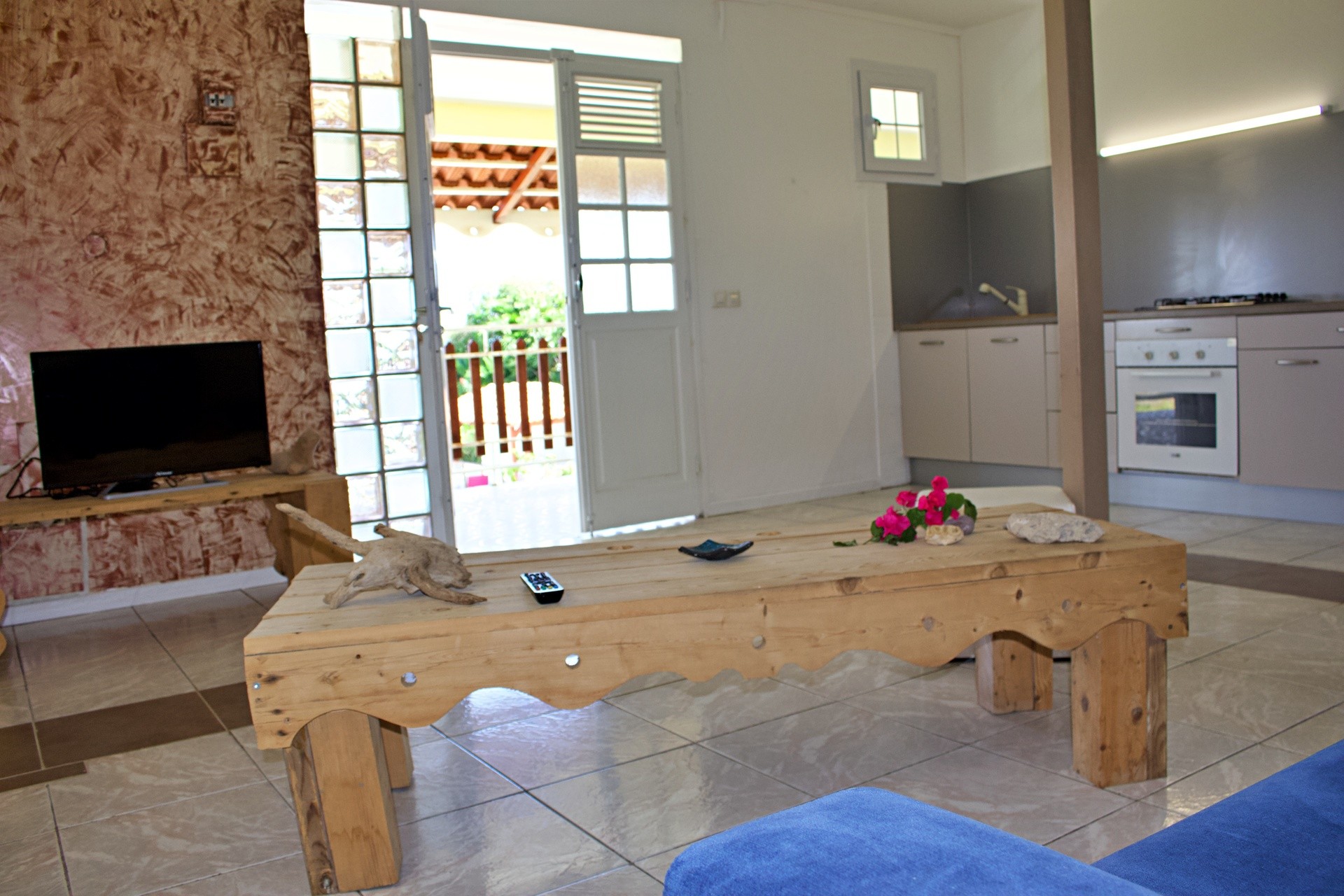Le jardin est rempli d’arbres fruitiers tropicaux (banane, avocat, canne à sucre, ananas, goyaves, prunes de cythère, grenades, pommes cannelles, citron vert...), à consommer sans modération.