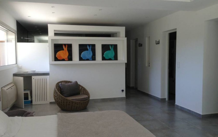 Deux chambres indépendantes de 18 m² chacune :- chambre- salle de douche - wc- placard- terrasses- jardin