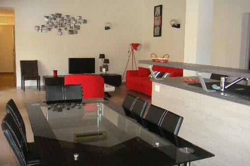 Ce logement de très bon standing comprend, un séjour de 40 m2 avec cuisine à l'américaine entièrement équipée (lave-vaisselle, lave linge, réfrigérateur-congélateur, fours traditionnel et à micro-onde, plaques inductions...)