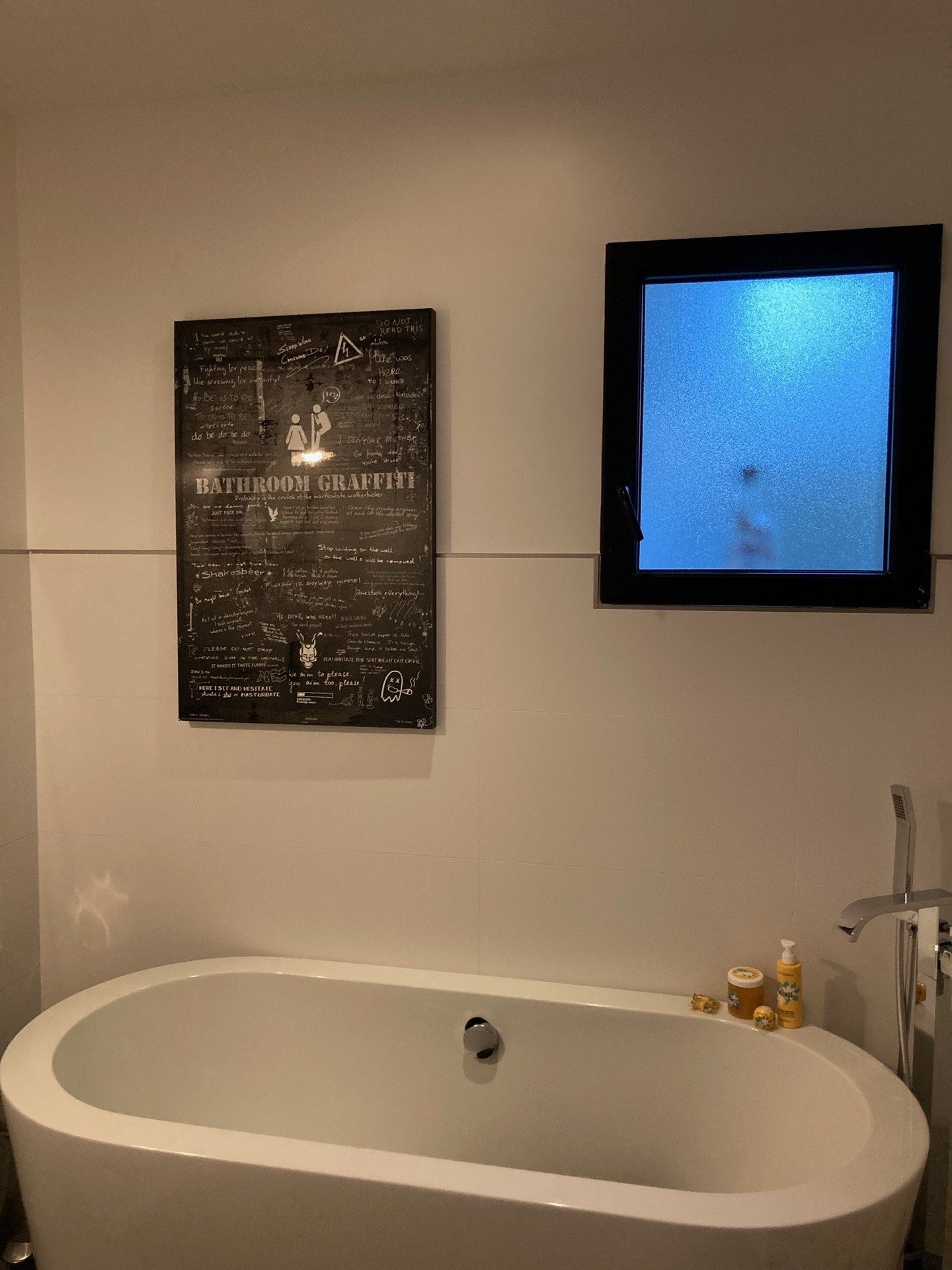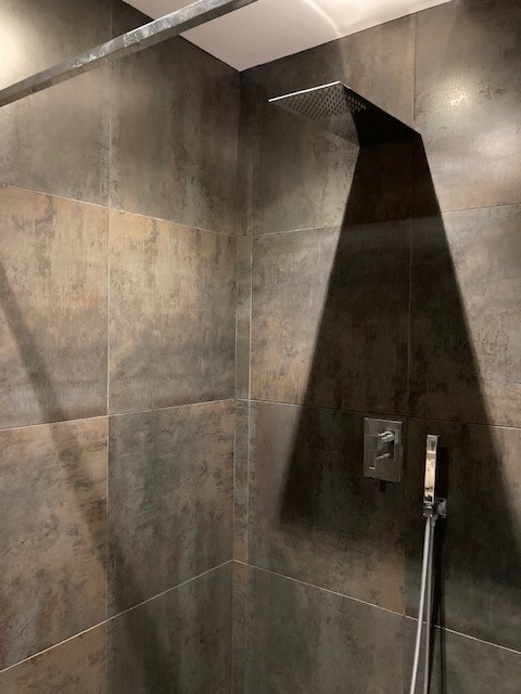 - Une salle de bain avec baignoire, douche et deux vasques