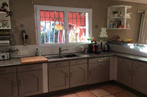 Rez de chaussée:grande entrée deux chambres avec grand lit(1m40/2M)un chambre enfants lits superposés une salle d eau,un toilette privée