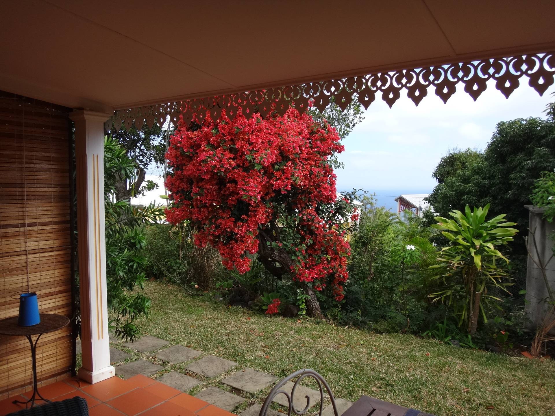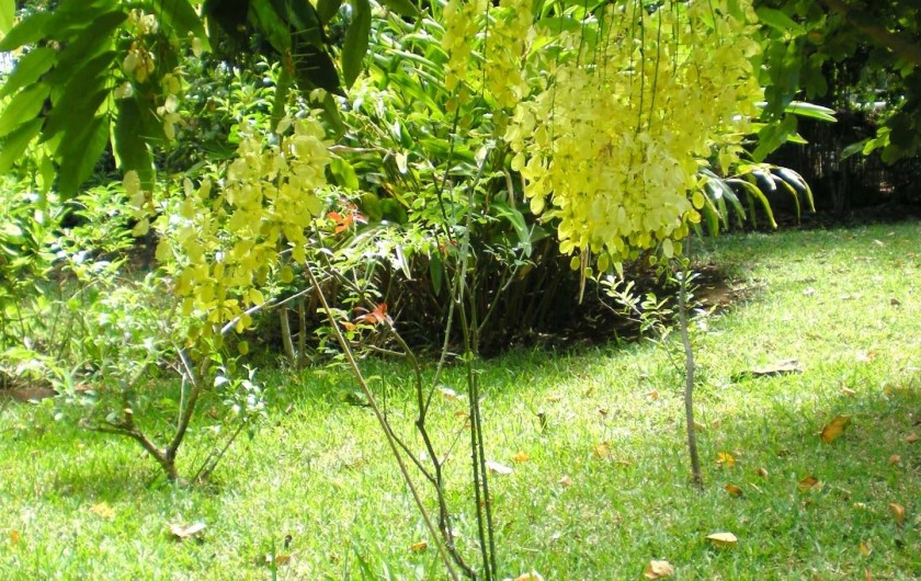 Il se situe dans un jardin à l'accès et à la jouissance privatifs de 1100m2 d'espèces endémiques - palmier royal, lataniers, ylang ylang, cannelle, frangipanier, manguier, letchees et bien d'autres plantes. un véritable écrin de verdure tropicale avec ses merles de maurice, martins, tisserins et caméléons.... pour les amoureux de la nature.