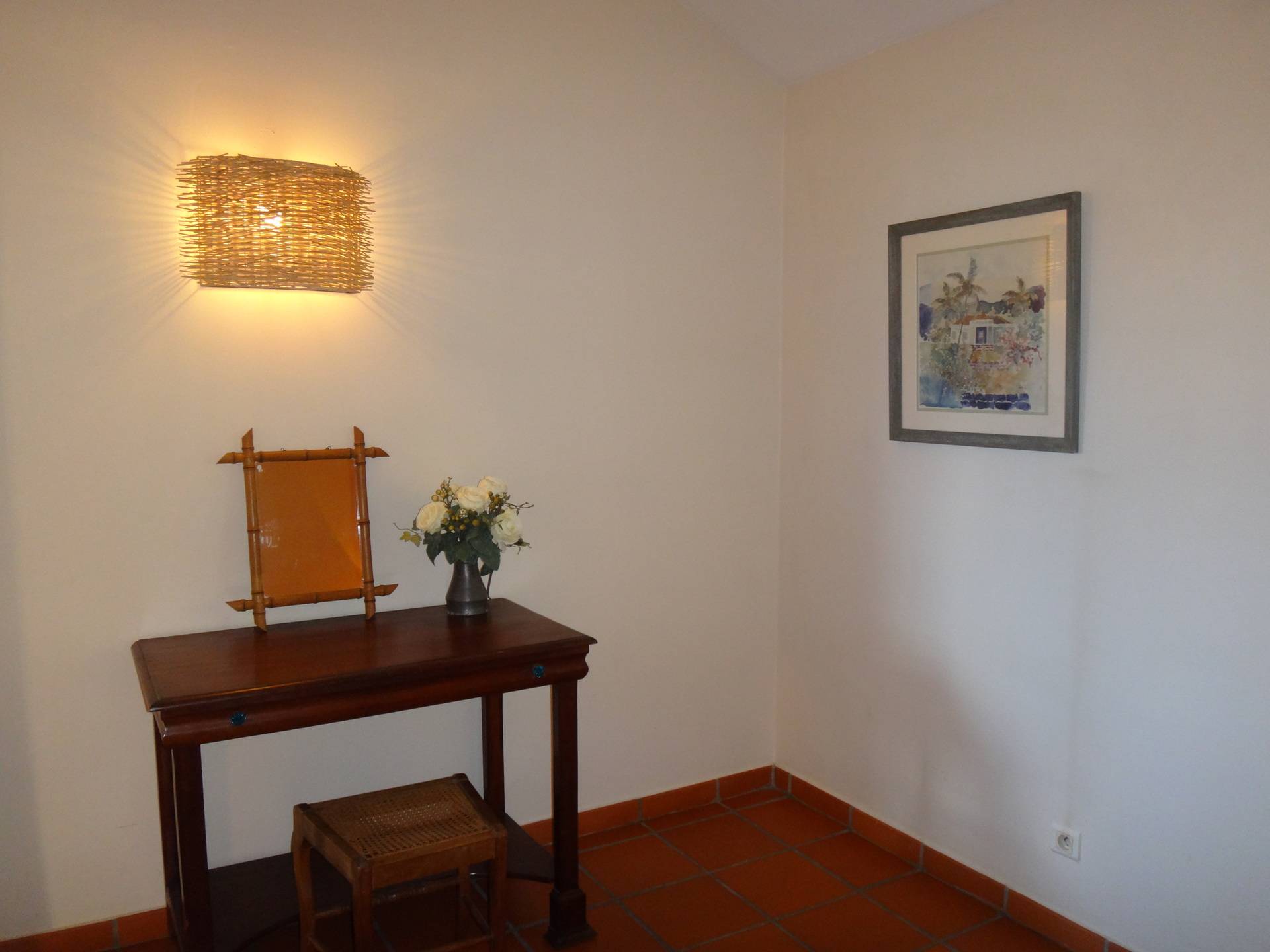 Villa type T3 de style créole, deux chambres aménagées pour deux couples, ou une famille avec enfants, deux grands lits, un (lit BB, et chaise haute )-cuisine-salon, salle de bains avec douche et WC. Varangue de plain pied sous laquelle on prend ses repas avec les oiseaux et les bougainvillées. BBQ, douche extérieure très agréable au retour de la plage.