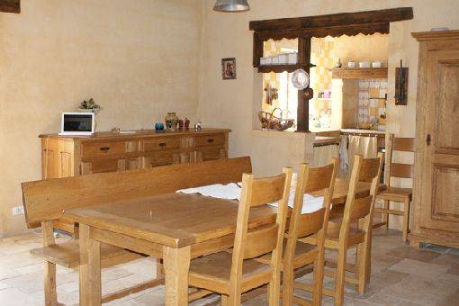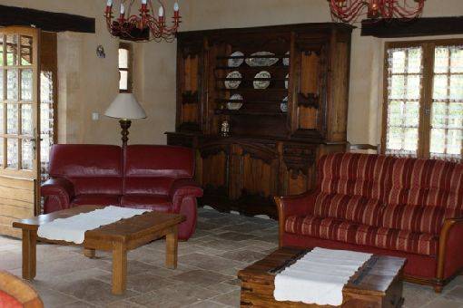 Grande Salle à manger Avec cheminée et cuisine équipée ouverte ,grand salon avec 3 canapés et fauteuils et 1 chambre avec salle d'eau .wc