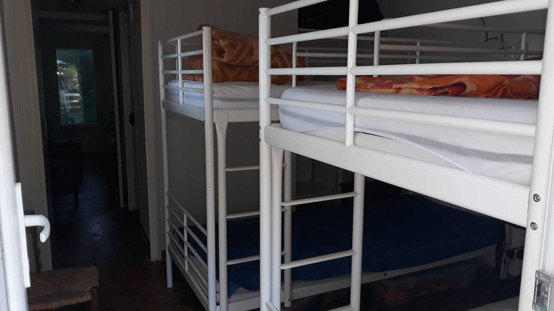 Pour grande famille à petit prix cette villa avec belle vue mer va vous ravir. Organisée pour recevoir 8 personnes, 2 chambres avec lit doubles, une chambre pour les jeunes avec 4 lits superposés. Deux salles d’eau, cuisine bien équipée, avec lave-vaisselle, lave-linge, un barbecue et un jardin pour les jeunes. Très bon rapport qualité prix pour de joyeuses vacances aux Issambres. Parking intérieur Prix variables selon la saison