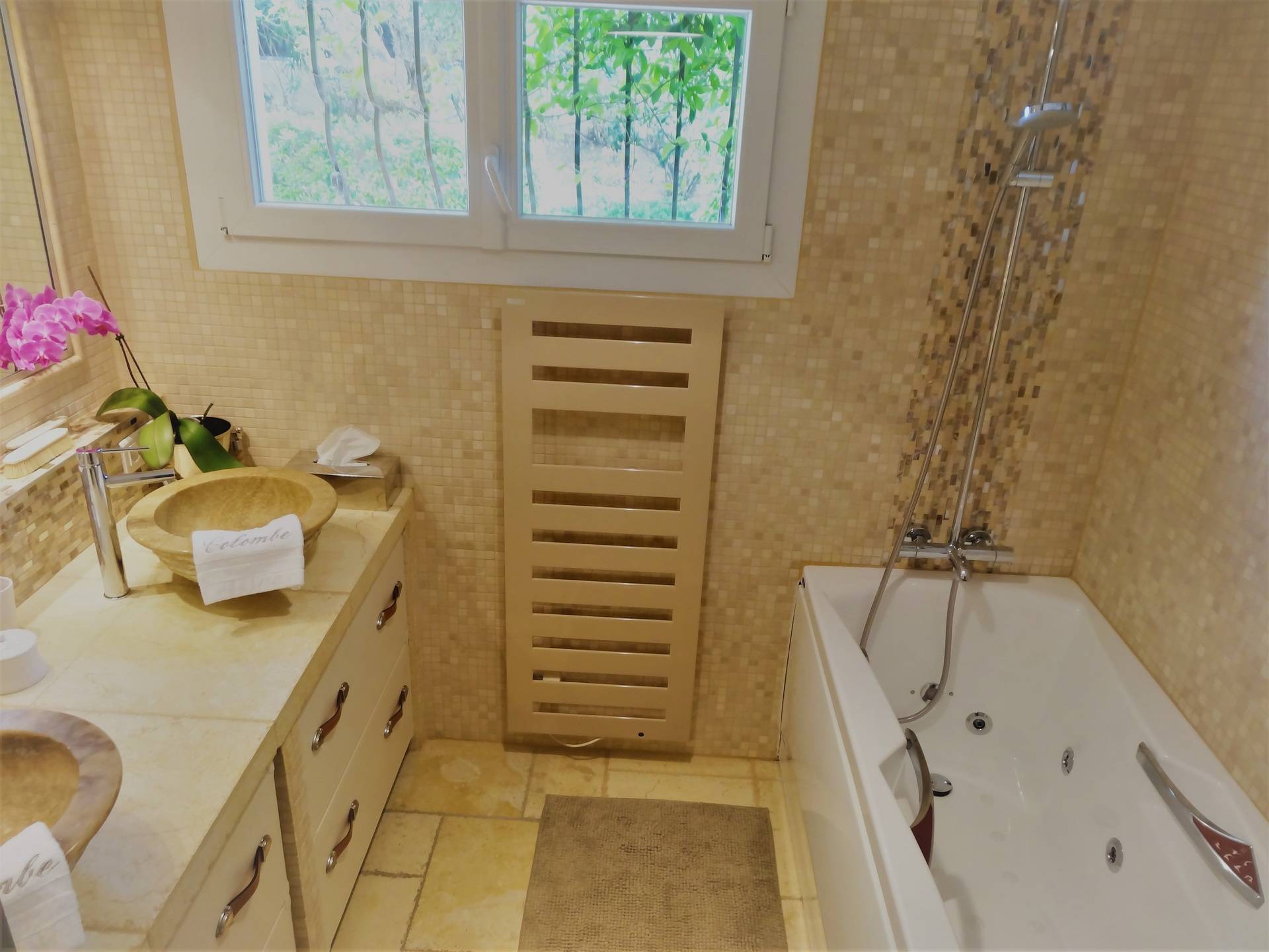 156 M² habitables . Au niveau 0 : entrée, séjour climatisé, salle à manger, cuisine équipée semi-professionnelle, 3 chambres, une salle de bain avec baignoire balnéo et vasques pierre , une salle de douche, une buanderie. Terrasse panoramique de 115 m² avec salon d’été, coin repas abrité, autre coin repas. Barbecue weber gaz.