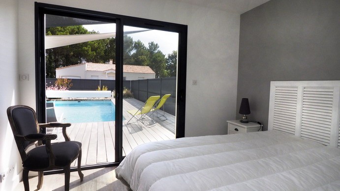 La chambre parentale et la pièce principale ouvrent sur la terrasse et piscine sans vis à vis.
