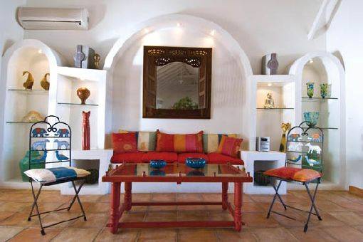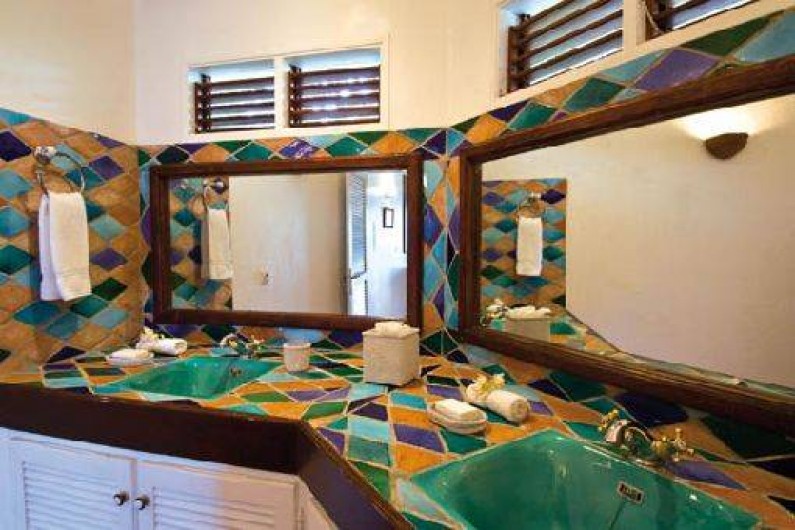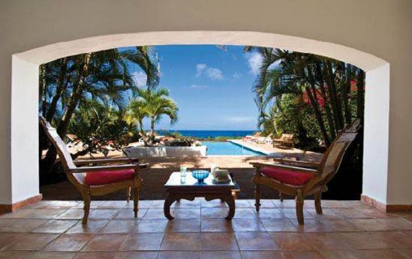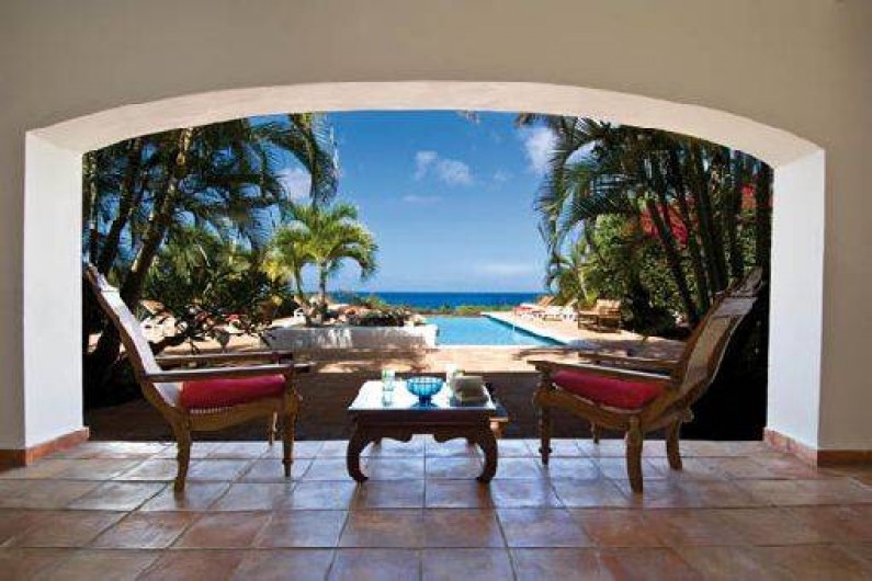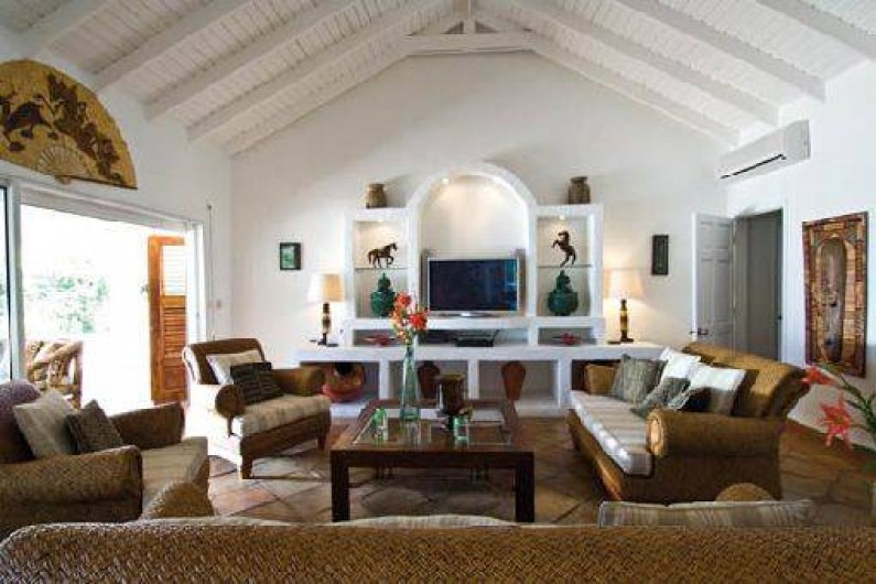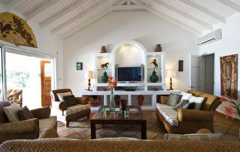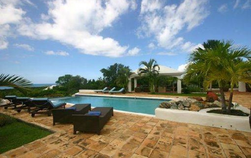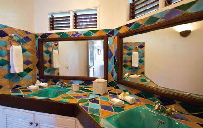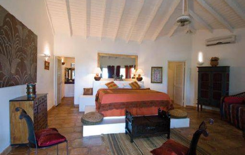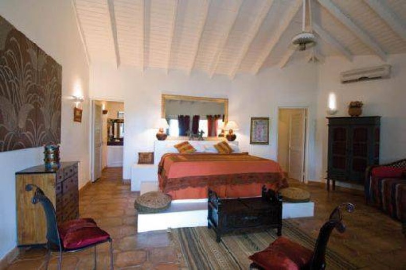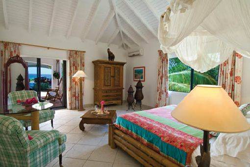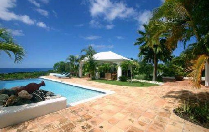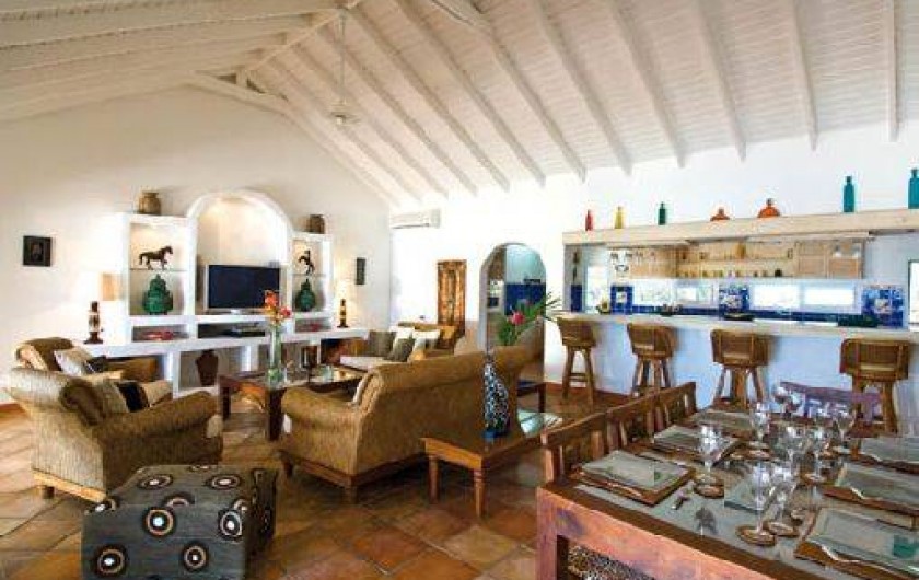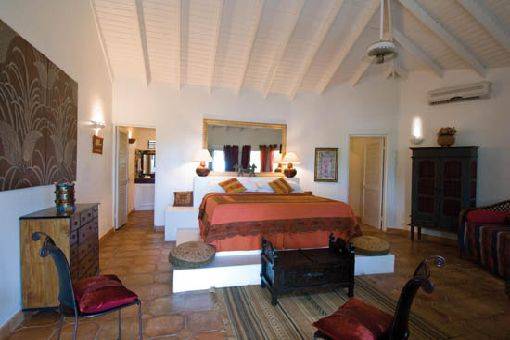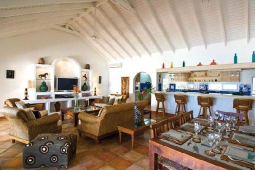 entre 4 vastes chambres (très grands lits), un séjour et une salle à manger admirablement aménagés. L'immense cuisine de style méditerranéen possède des appareils dernier cri et peut facilement recevoir un grand groupe pour dîner à l'intérieur ou - encore mieux - al fresco sous le vaste gazebo avec vue panoramique sur la mer des Caraïbes.
