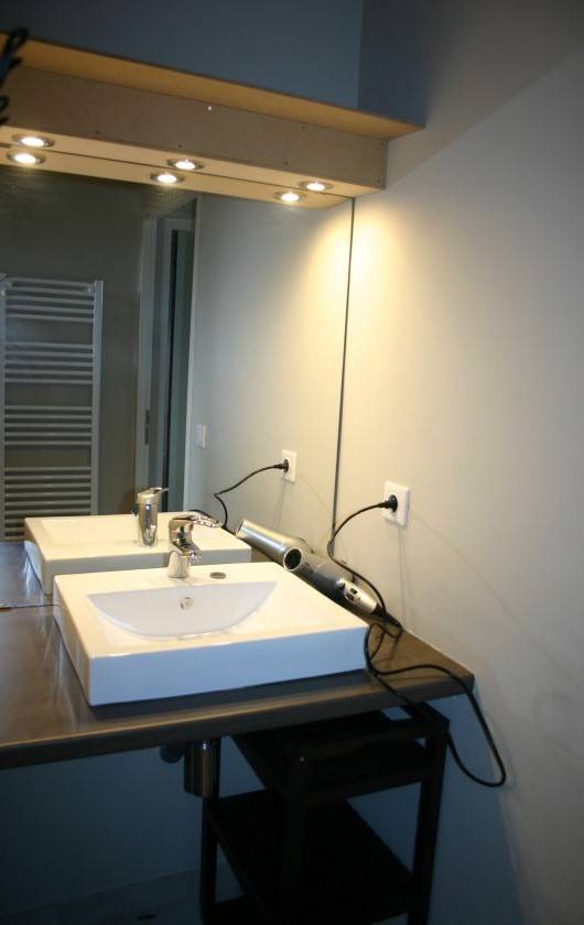 1 salle d'eau avec douche à l'italienne, radiateur sèche-serviettes,