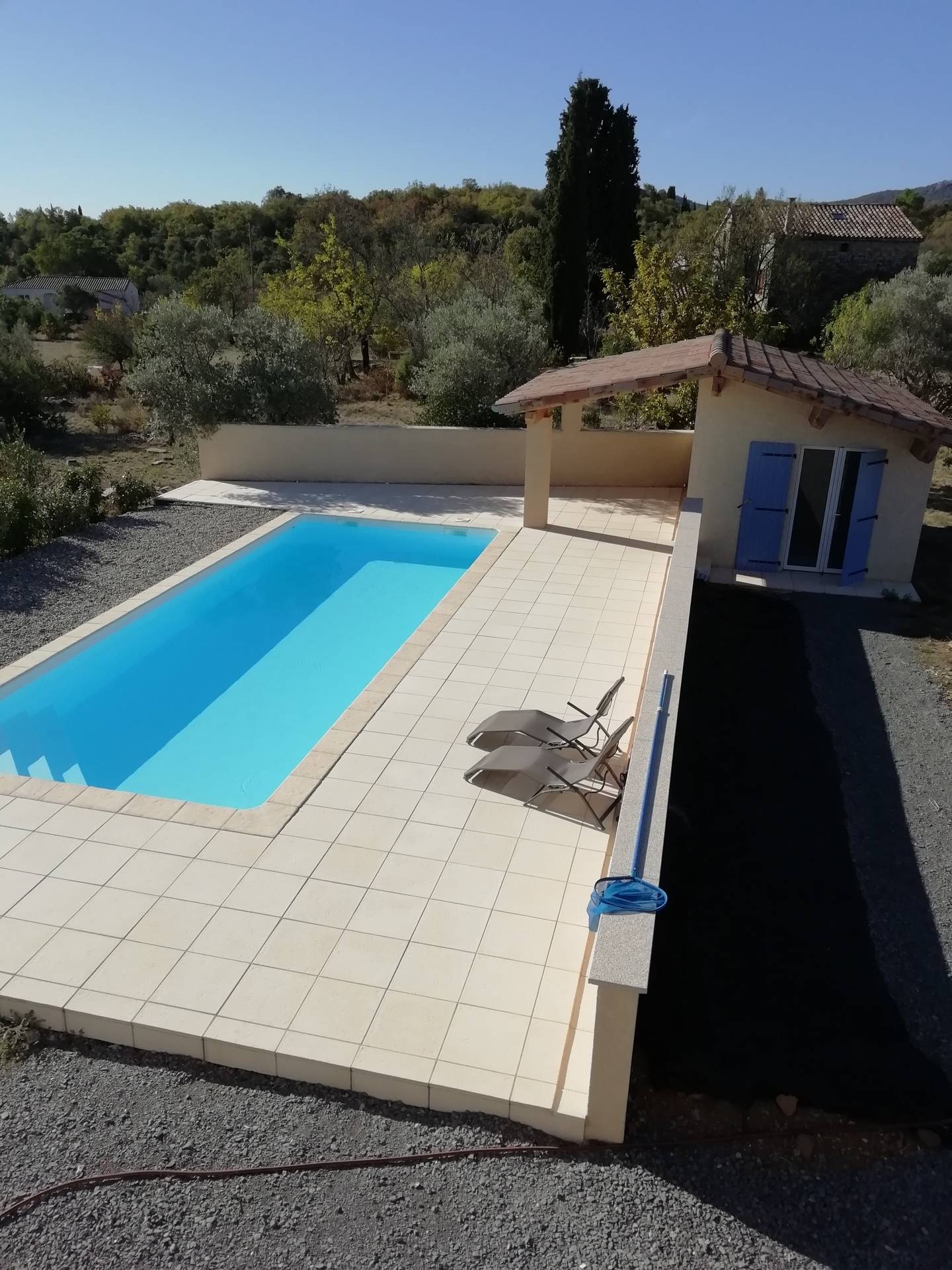 Piscine 40 m² avec douche solaire