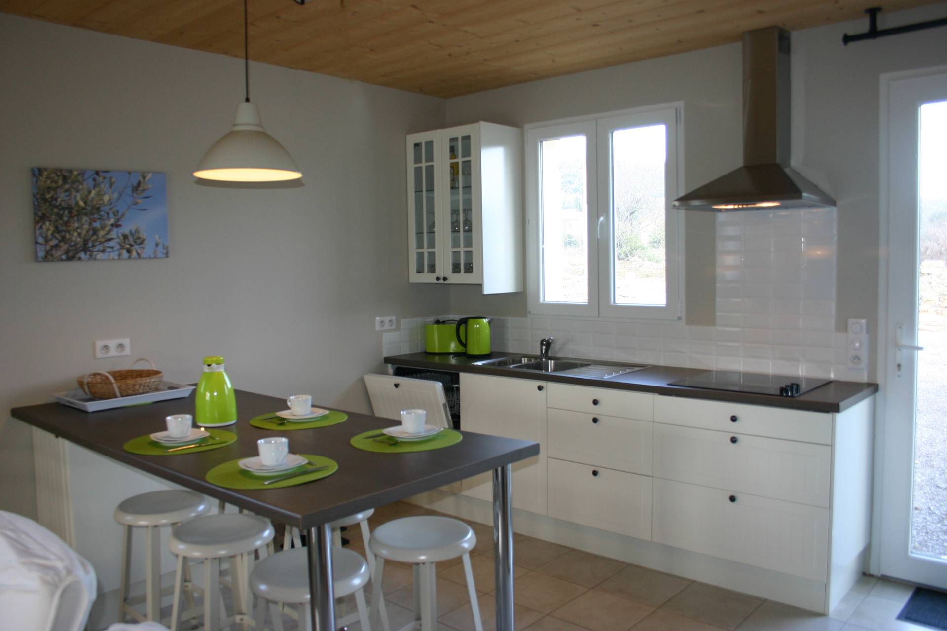 Cuisine entièrement équipée : plaque de cuisson, four micro-ondes/traditionelle, 1 réfrigérateur avec congélateur, lave-vaisselle, bouilloire électrique, mixer, toasteur