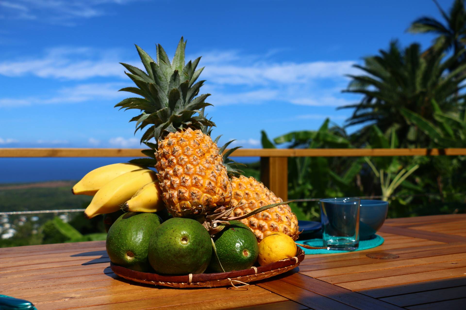 Le jardin est planté de bananiers, avocatier, chouchou, oranger et letchi.