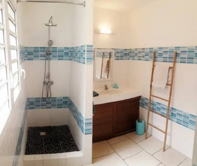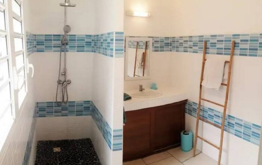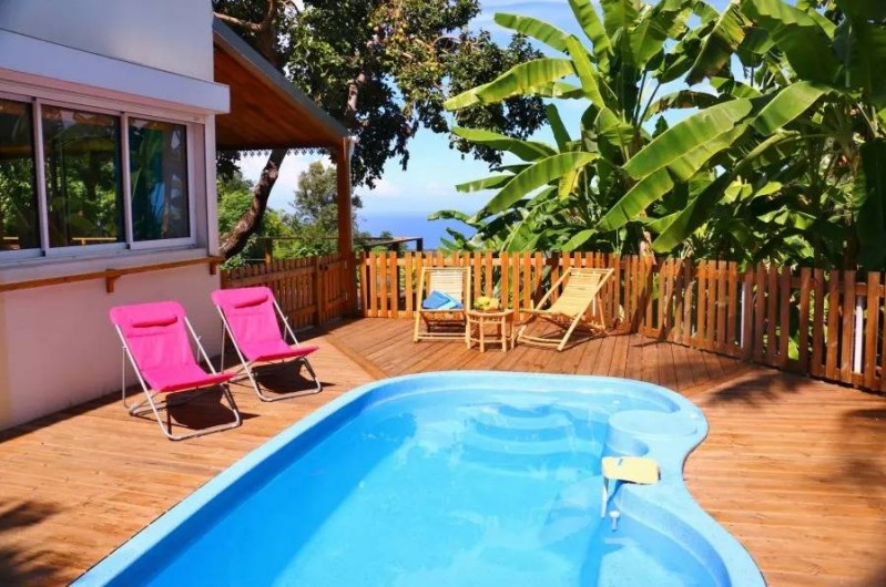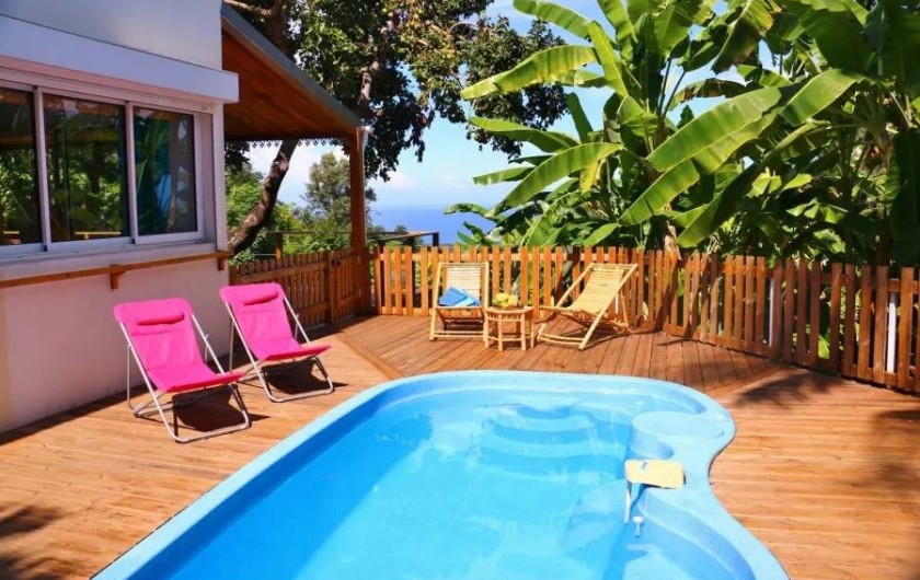 La piscine entourée de bananiers avec une vue directe sur la mer promet des bains délicieux…