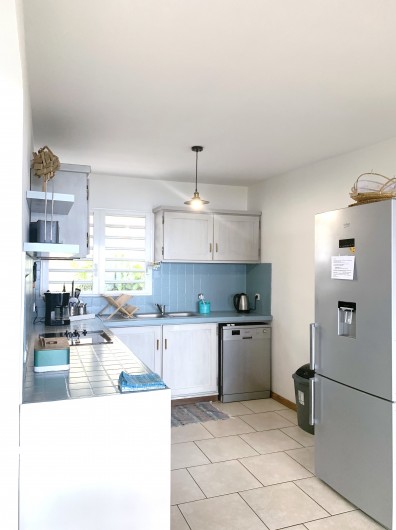La villa est moderne, confortable et décorée avec soin. De grandes baies vitrées s’ouvrent sur le deck où un salon d’extérieur et un coin salle à manger n’attendent que vous.