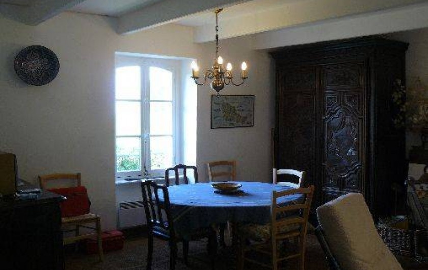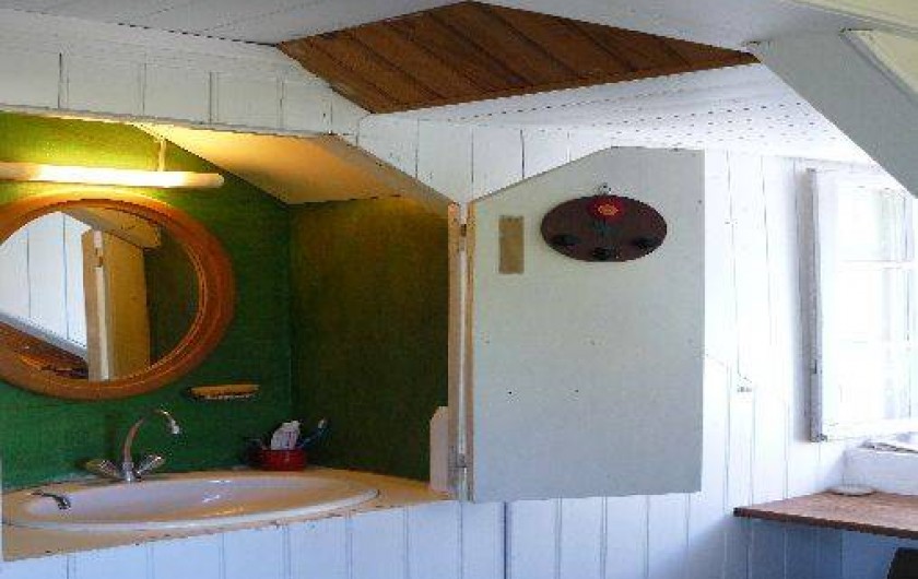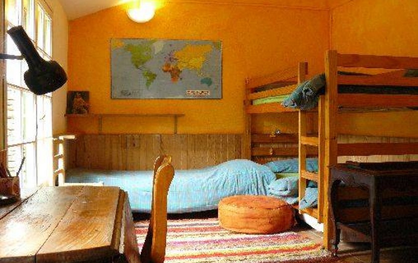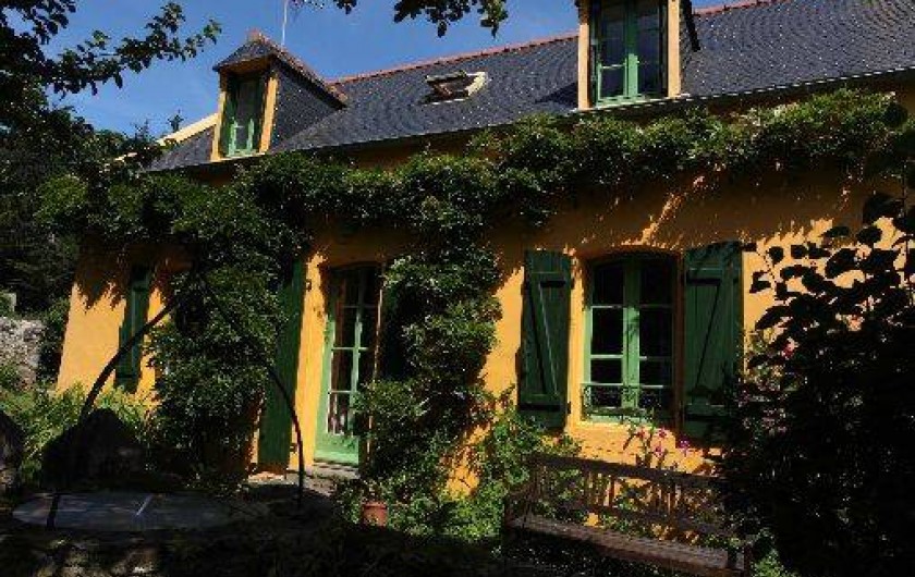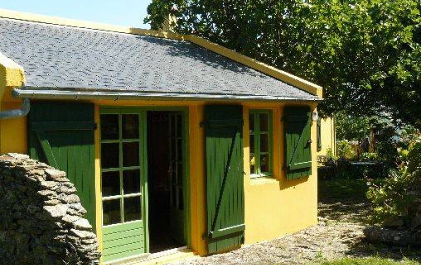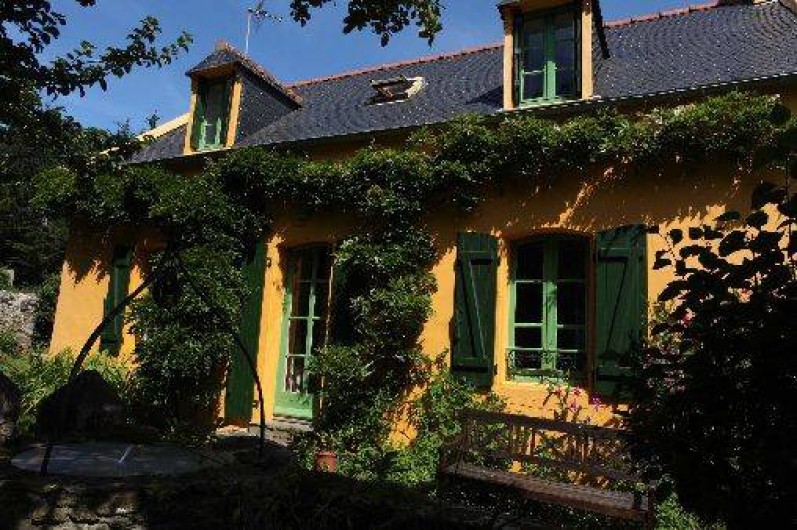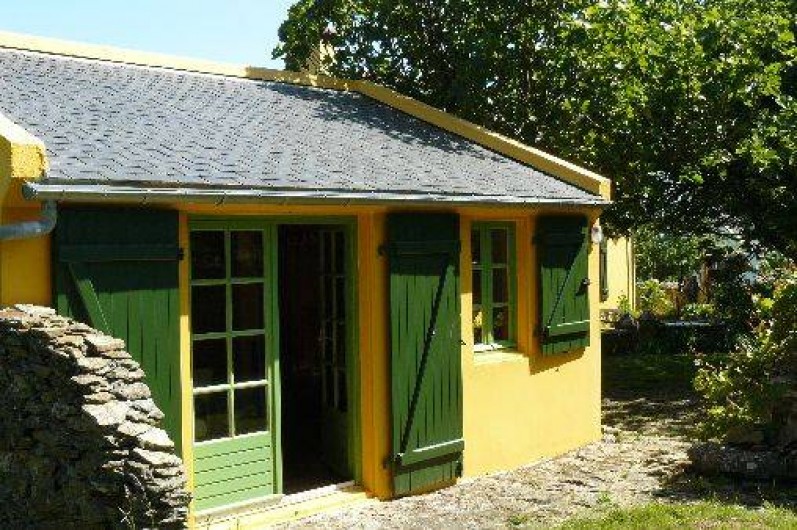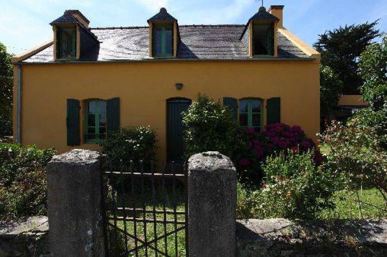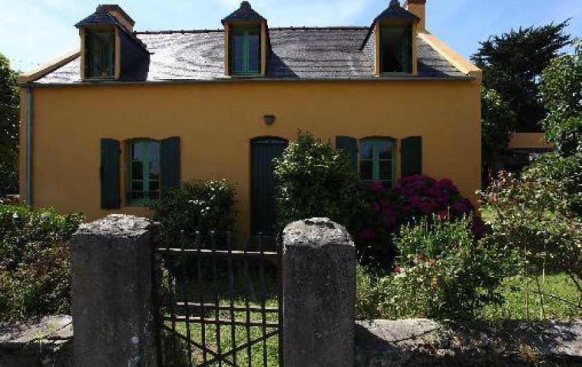 location d'une maison individuelle, dans un hameau sur belle île en mer en Bretagne dans le Morbihan. Elle comprend au rez de chaussée : séjour salle à manger, cuisine, 1petite chambre avec lit une personne, WC, à l'étage 2 chambres avec lits de couples, 1 petite chambre pour enfants avec 2 lits simples, une salle de bains avec WC, cabinet de toilette dans une des deux chambres pour couple. Dans le jardin séparée de la maison une chambre pour"ados" avec plusieurs couchages (2ou 3).