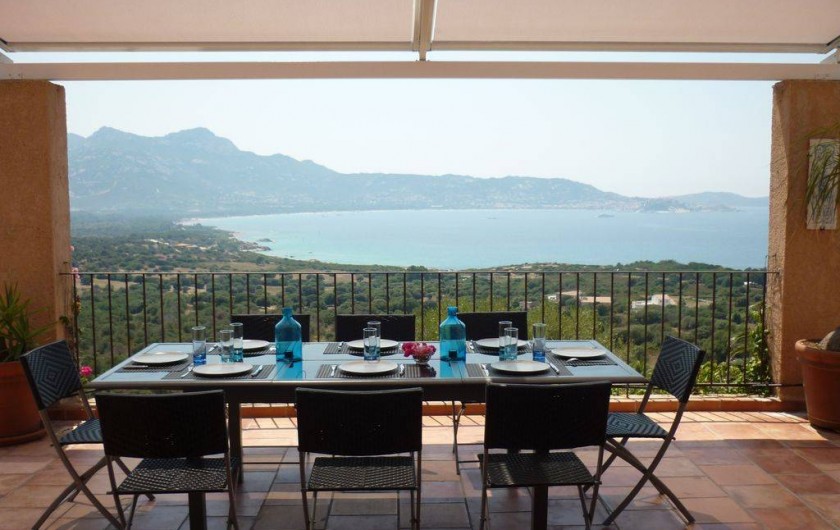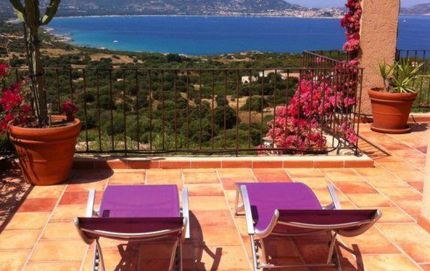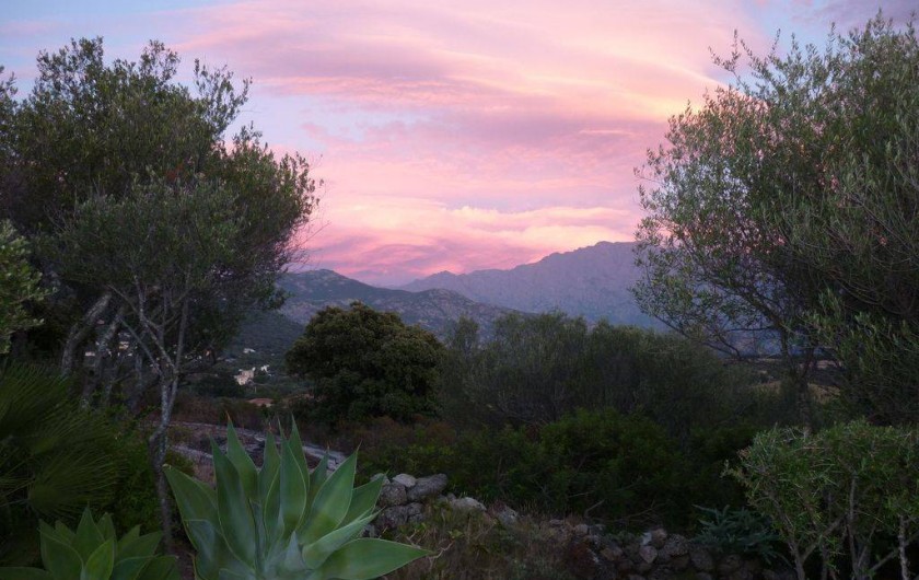 Villa moderne de 150m2 située sur un promontoire avec vue exceptionnelle, panoramique, dominante et animée de plus de plus de 270° sur la plaine mer le golfe de Calvi et sa célèbre Citadelle en vis-à vis, les hautes montagnes, les villages de Balagne et la plaine; dans un petit domaine arboré et fleuri privé, clos et fermé par grille sécurisée, aménagé avec piscine close et tennis privatifs (à disposition des locataires), très calme, entourée par la nature, située à Lumio, entre Calvi et Ile-Rousse, proche de la marina de San Ambrogio, et à 800 m d'une plage de sable et de