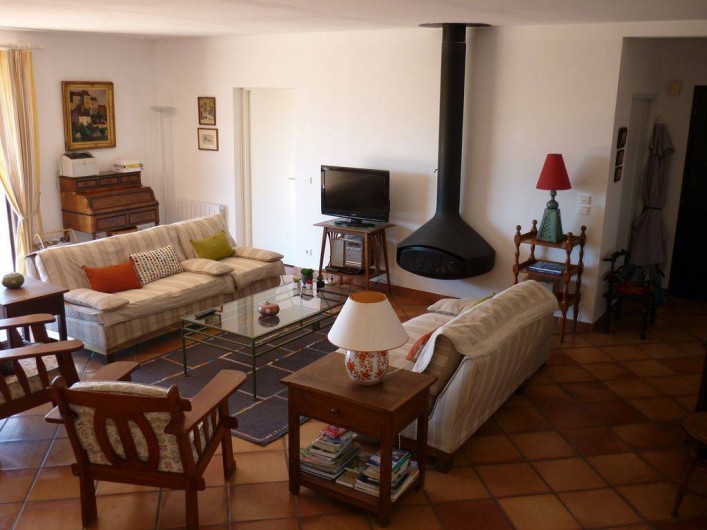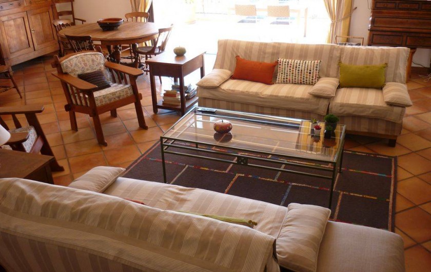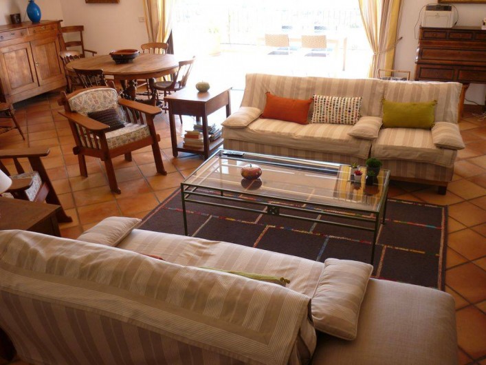 - Living 60 m2 avec grande baie vitrée donnant sur terrasse partiellement ombragée,