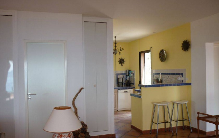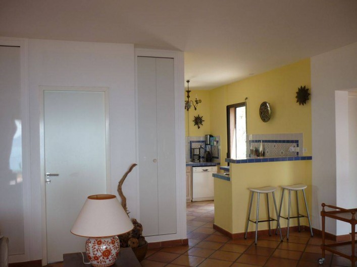 - Cuisine ouverte équipée de nombreux placard, avec grand frigo-congélateur, deux éviers dont un double, plaque cuisson mixte 4 feux, lave vaisselle, micro-ondes et importante batterie de cuisine ainsi que service table, verres et couverts.