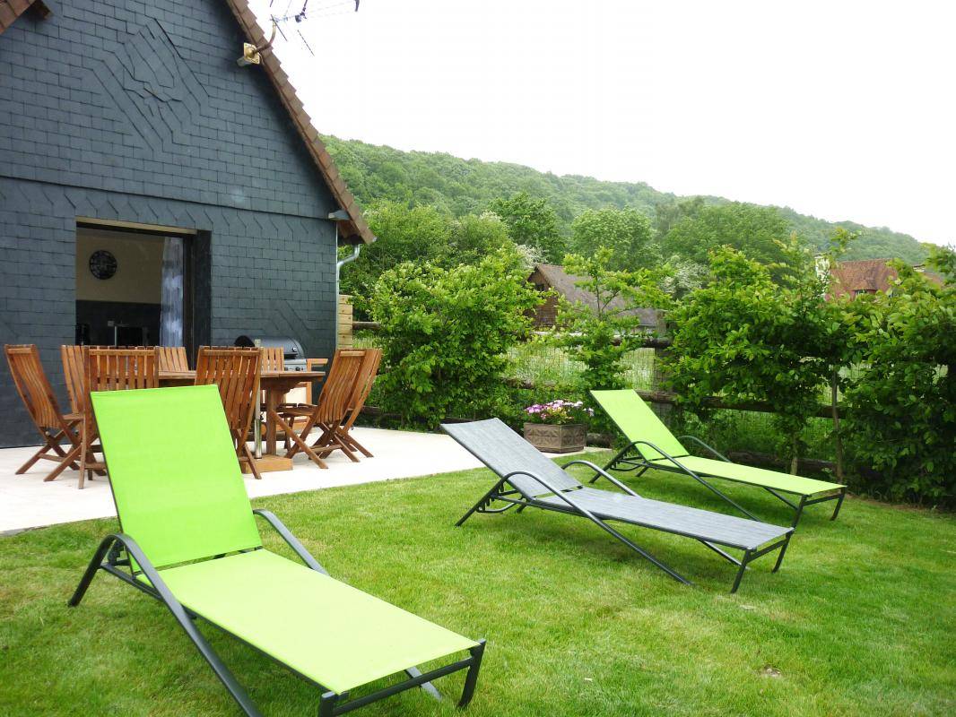 Gite de la Vallée du Chaussey : Situé à 15 minutes des plages de Deauville et Trouville, le gîte de la Vallée de Chaussey est idéal pour vos séjours en famille entre mer et campagne. Confortable, moderne et bien équipé, ce gîte bénéficie d'une vue magnifique sur la vallée et la terrasse exposée plein sud est particulièrement agréable. Découvrez la cité gourmande de Pont l'Evêque et ses nombreux commerces, restaurants et producteurs normands.