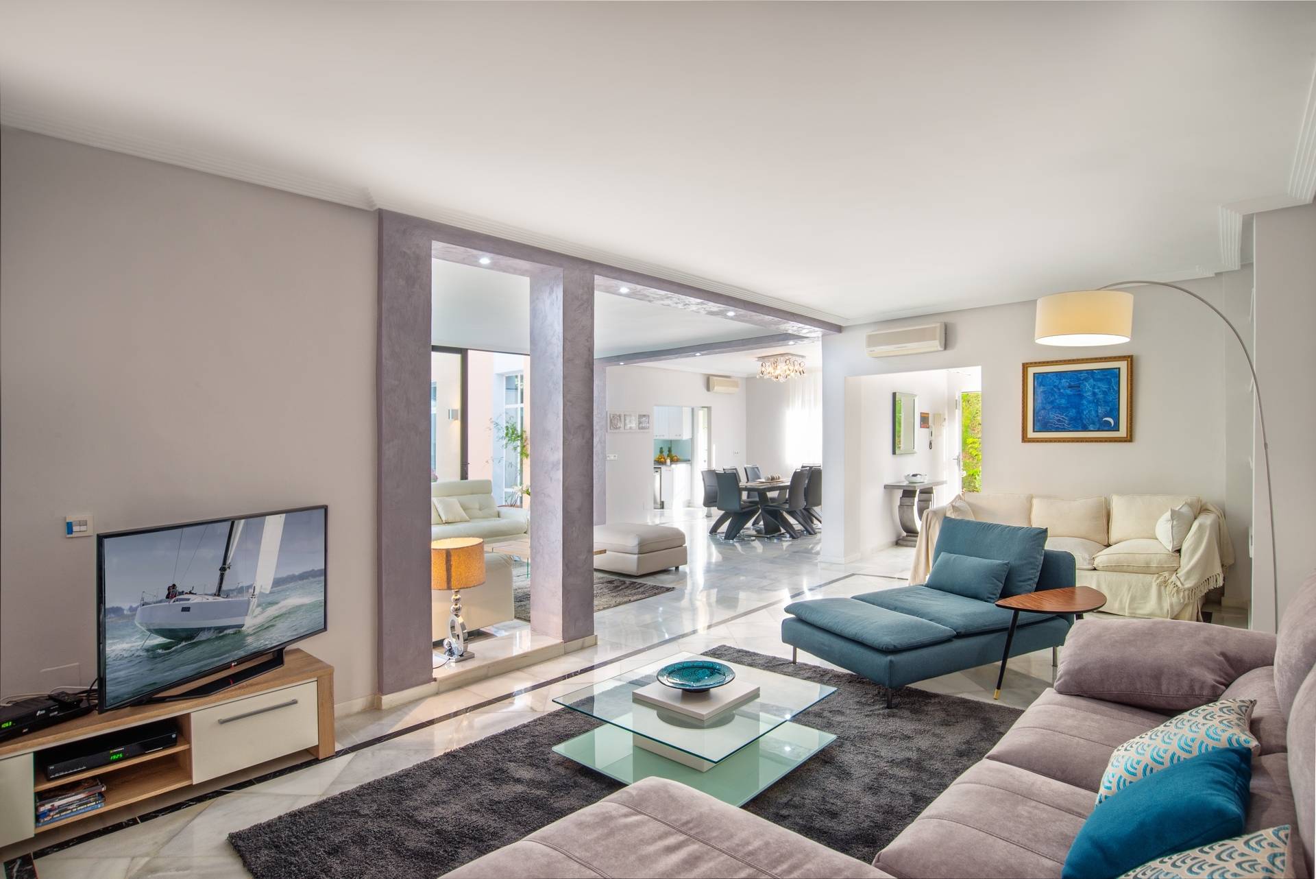 Propriété exclusive de style contemporain à Nueva Andalucia, Marbella, au coeur de la vallée de golf près de Aloha, Los Naranjos et Las Brisas terrain de golf et à quelques minutes de la vie nocturne scintillante de Puerto Banus et ses plages élégantes. Situation très calme dans une rue cul-de-sac, mais à proximité des commerces et des restaurants, avec une finition moderne et exclusive, Villa Las Brisas a été récemment rénové avec de nouveaux accessoires de salle de bains et fournis par l'architecte d'intérieur de la classe et le style, et est entièrement enregistré avec le