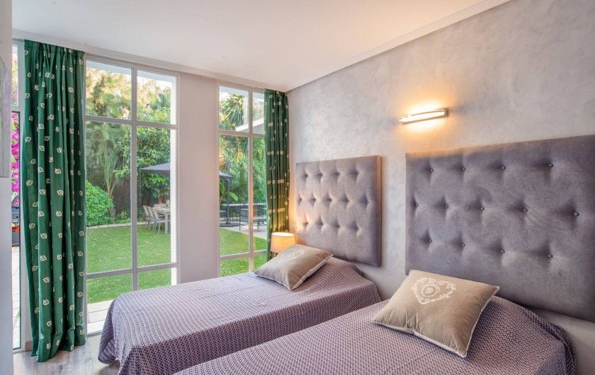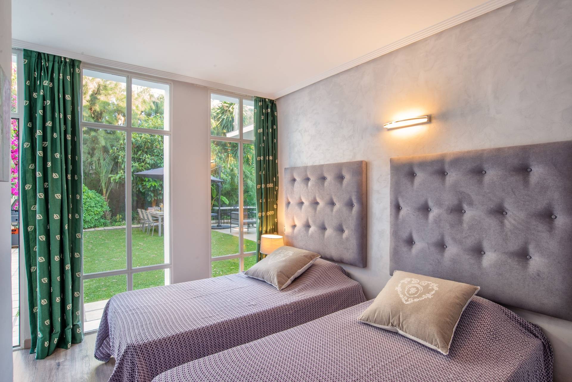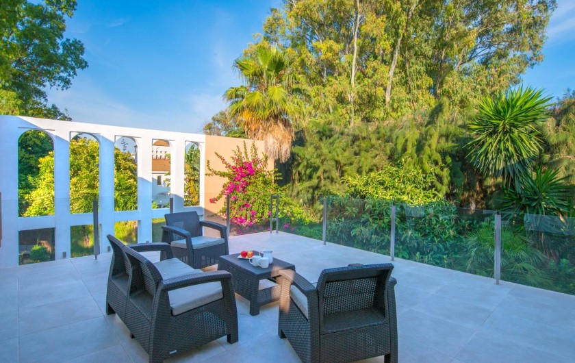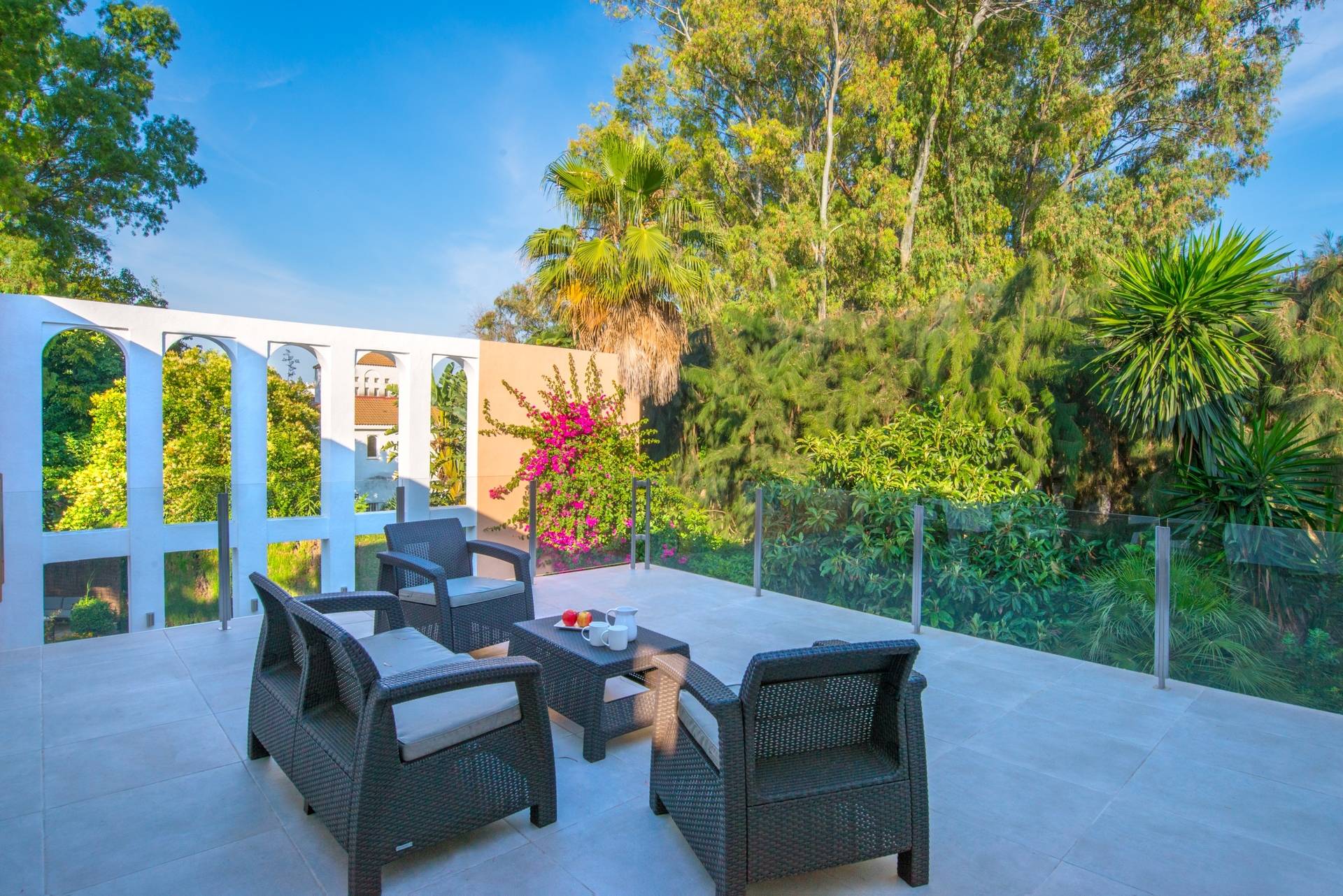 Le premier étage dispose de 5 chambres, la grande chambre des maîtres, avec leur dressing privé et une terrasse privée, 2 chambres doubles avec lits king size et une salle de bains et deux chambres avec deux lits simples 105 cm. Au premier niveau, il y a aussi une grande terrasse avec accès depuis le couloir avec vue panoramique sur le parcours de golf de Las Brisas, la montagne Concha, la piscine et le jardin. Parfait pour une famille ou un groupe d'amis ce refuge peut accueillir jusqu'à 12-14 personnes à un moment donné et est disponible à la location de toute l'année.