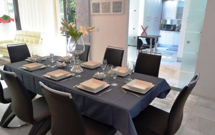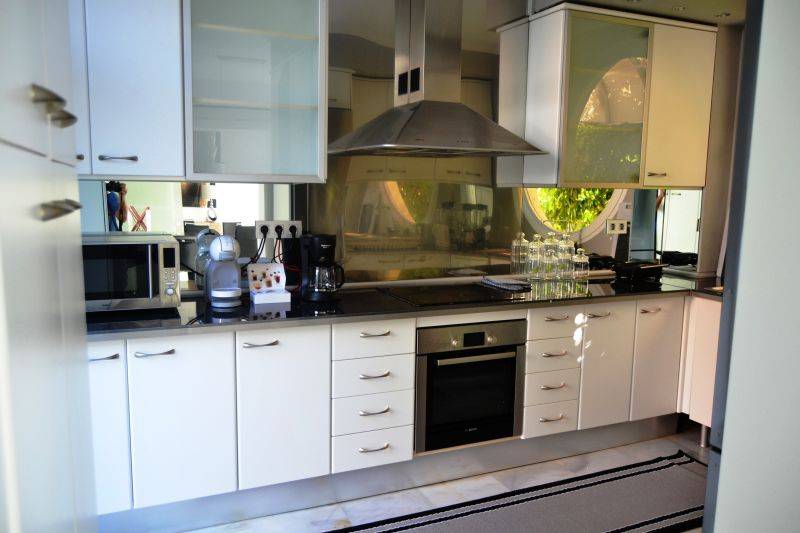 La construction, avec plus de 340 mètres carrés, est en plein sol en marbre et tout nouveau Wooding Tout au long de plancher. Cuisine équipée avec tous les appareils intégrés. Réfrigérateur avec de la glace et de l'eau. Grand séjour très confortable et très lumineux, face à la piscine avec deux salons. Un coin repas avec jusqu'à 12 sièges. TV et vidéo DVD, bibliothèque de films et le wi-fi dans toute la maison.