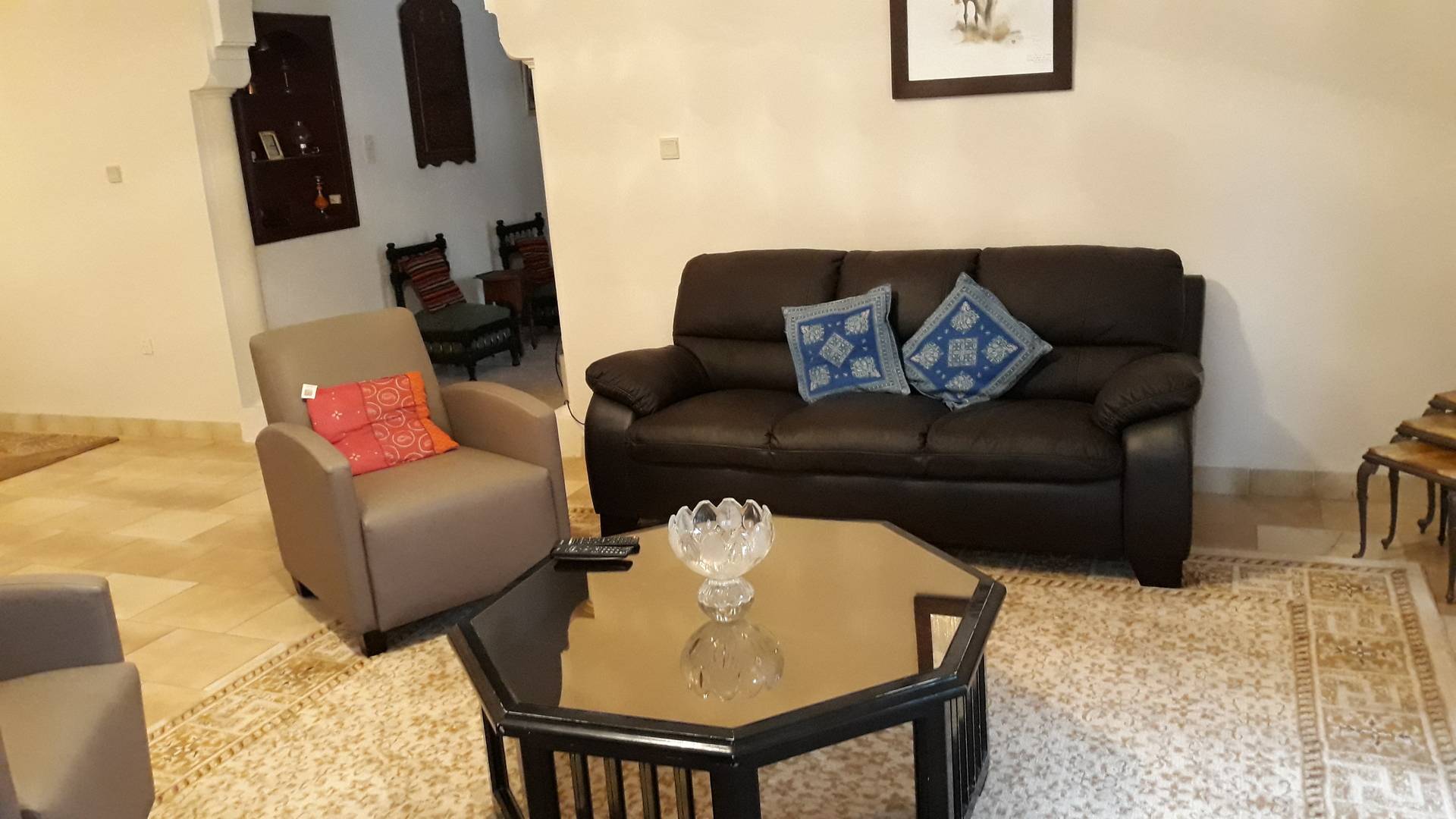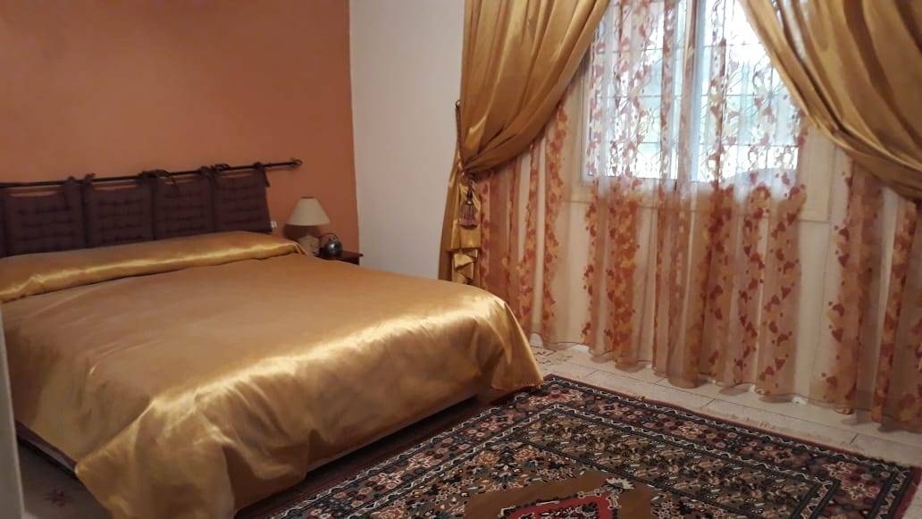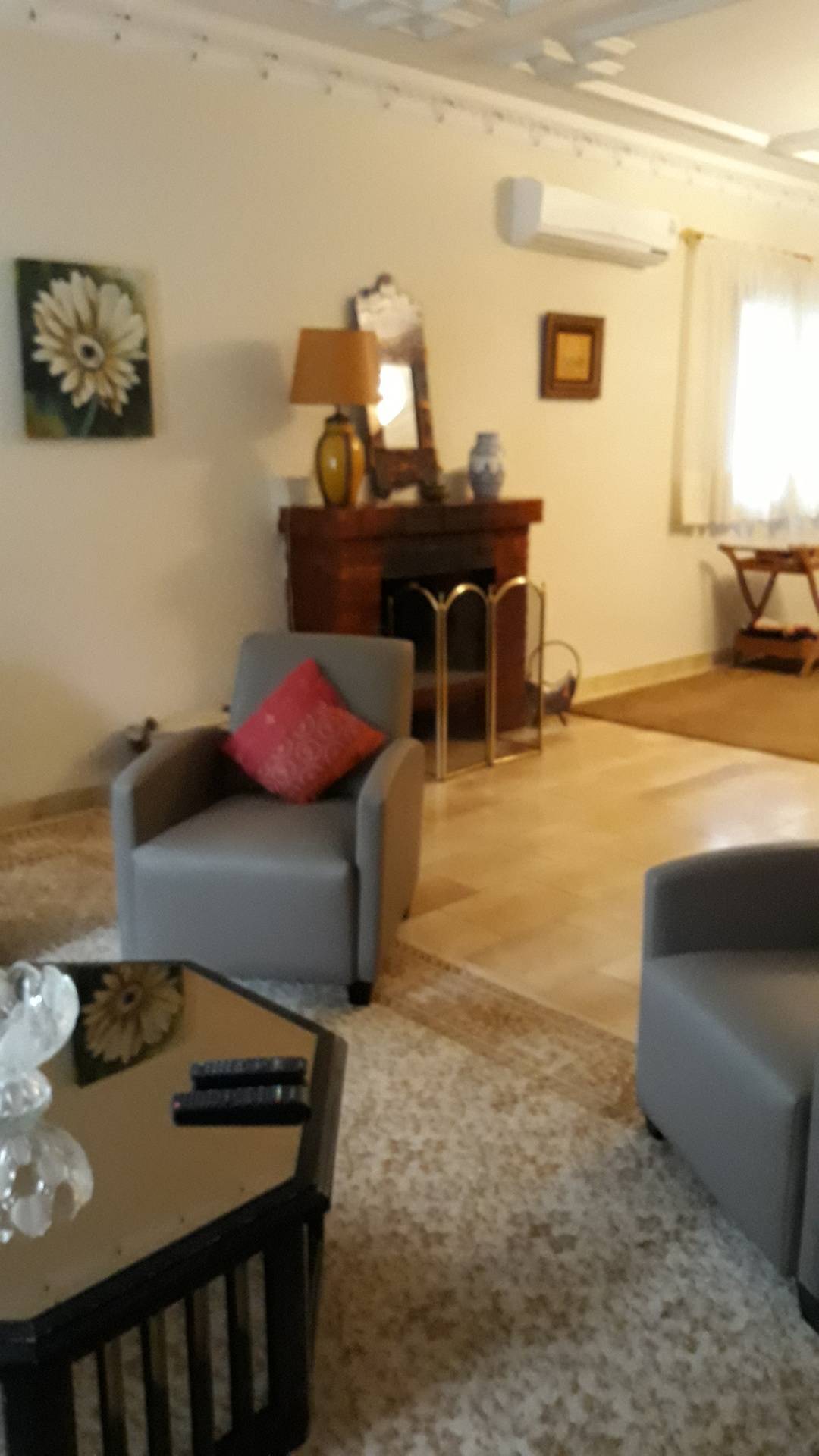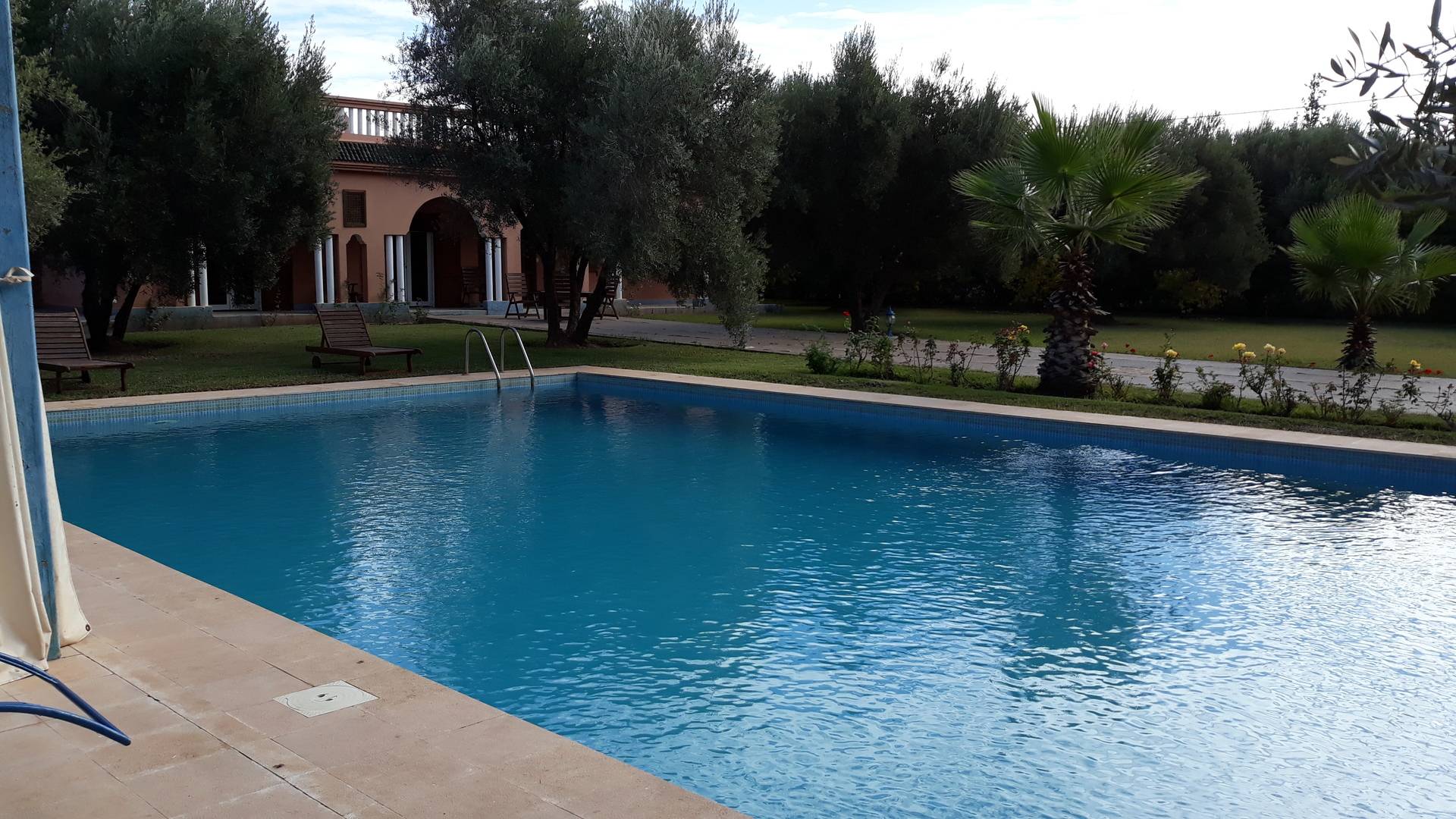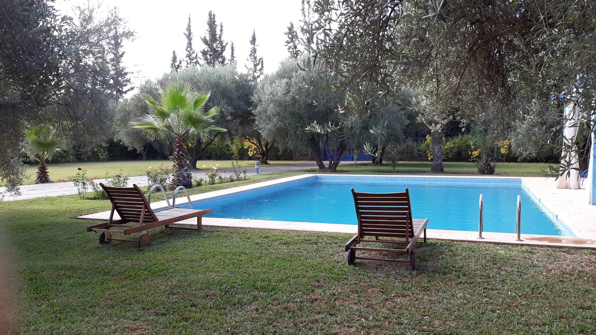 Villa de campagne climatisée :grand séjour avec cheminée et salon marocain .Cuisine équipée; Chambre parentale lit "King size" et salle de bain privative Chambre grand lit + lit clic clac Salle de bains Possibilité lit de bébé Très belle piscine et grand jardin gazonné Mobilier de jardin idéal "barbecues" Accessible aux personnes à mobilité réduite Convient parfaitement aux familles et seniors recherchant le calme à 15 mn de la trépidante Marrakech de la Palmeraie et de 4 golfs