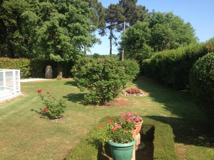 le gite dispose d'une piscine privative clôturée et d'un parc privatif fleurie