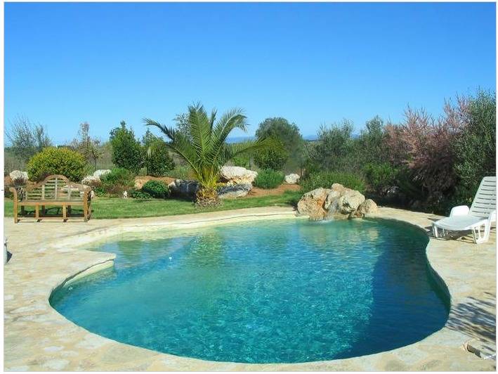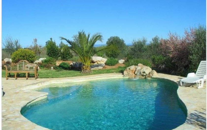 Piscine de 8,50 x 4m, profondeur 1m à 1,70m, plage immergée, mise à disposition sur demande d'un bracelet de sécurité avec alarme pour enfant.