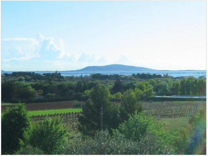 Vue superbe sur l'étang de Thau et sur les collines de l'arrière-pays