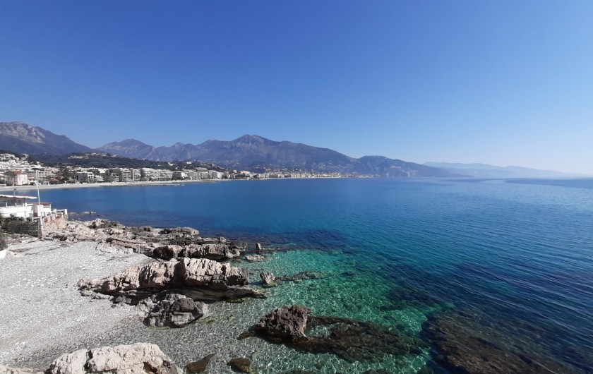 Situé à Menton, à 1,5 km des plages de la Côte d'Azur entre la principauté de Monaco et l'Italie, grand appartement 110 m² avec 3 chambres, 1 salle de Bains, 1 salle de douche, 1 cuisine américaine tout équipé, grand salon salle à manger, coin bureau, buanderie, terrasse avec table et transats. Parking pour 1 ou 2 voitures.