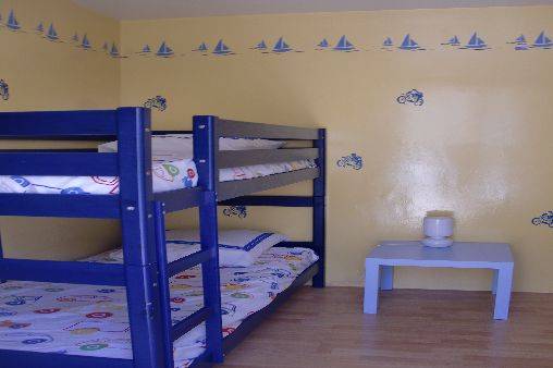 chambres (deux avec lits en 140 et une très grande avec lit en 140, 2 lits en 90 et un lit bébé), un coin bureau/salle de jeux, une salle de bains avec baignoire.
