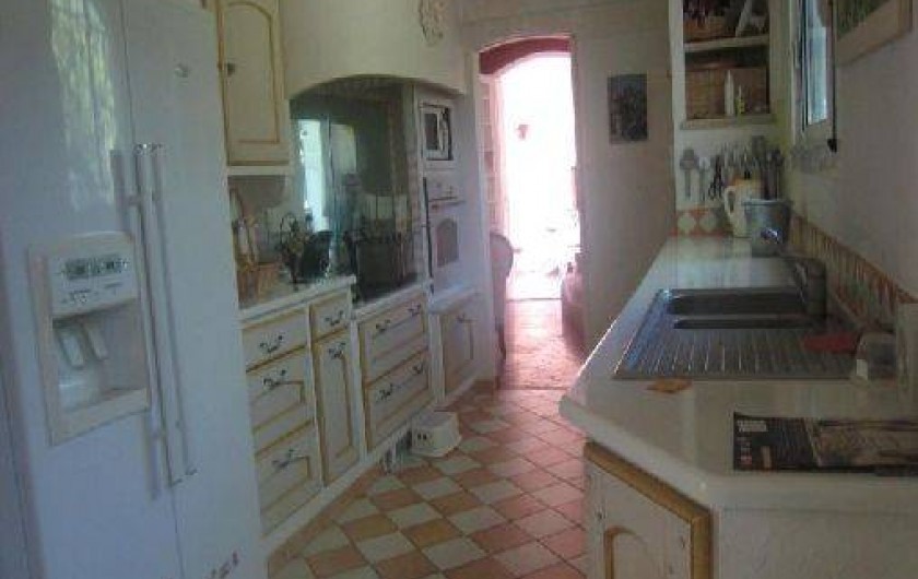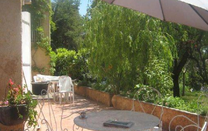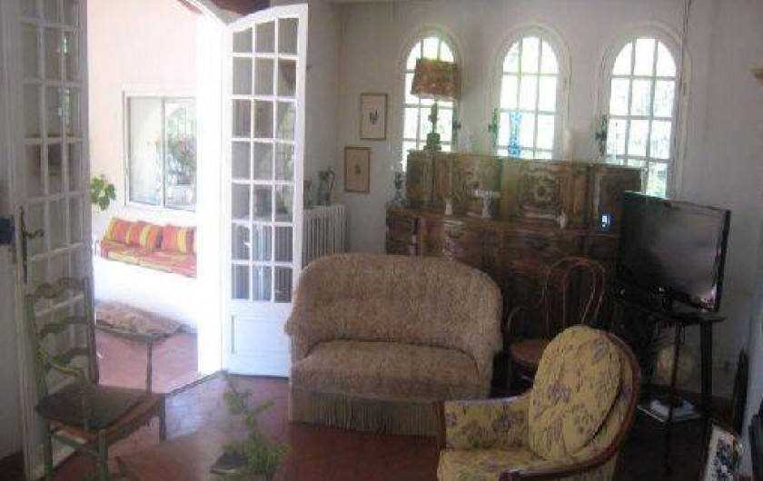 La villa comporte un sejour - salon donnant sur une terrasse plein sud avec table et chaises parasols.Barbecue electrique.