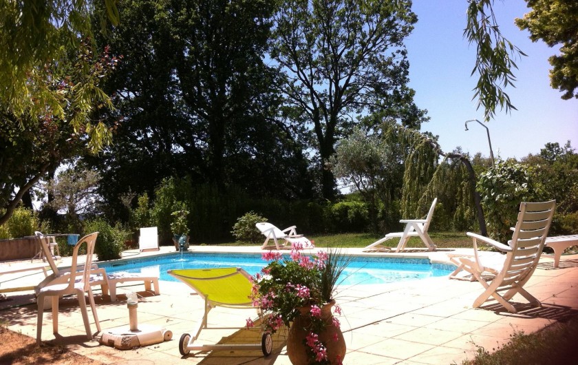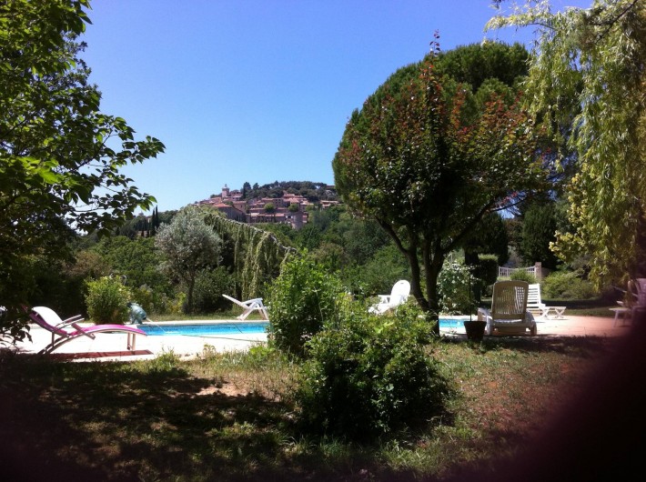 Villa située dans le Haut Var aux portes des Gorges du Verdon sur un terrain de 3000m² cloturé - portail electrique- terrain paysage hors lotissement sans vis a vis. piscine privée, de 5m x 10 - plage amenagée avec transats, parasols, arbres a proximités. Tres belle vue sur la village.