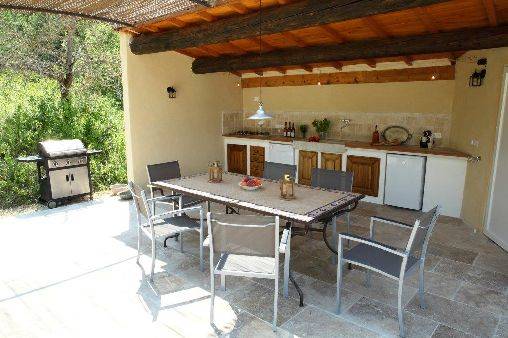le village de Mormoiron. Les dimensions de la piscine sont 10.5 x 5.5 m. A côté de la piscine il y une cuisine d'été avec une grande terrasse toute équipée avec une plaque de cuisson, lave vaisselle, frigo, évier et BBQ, tous un vue unique.