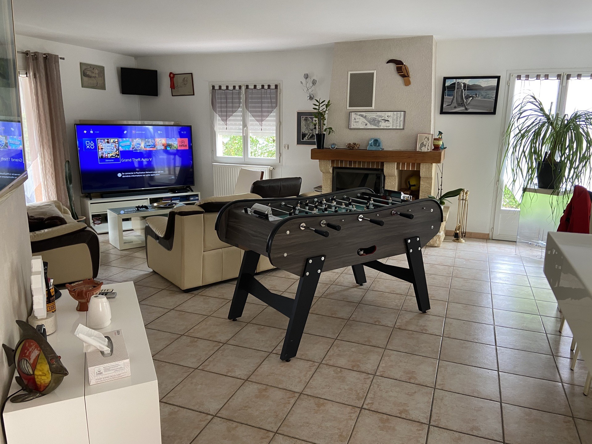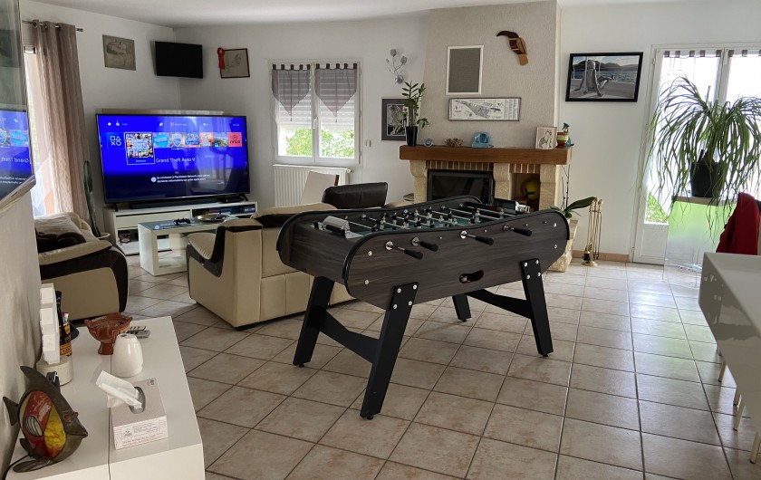 Télévision écran géant (188cm) TNT canal+et satellite dans le salon (LED) (PS4) et la chambre parentale (218cm), TV TNT LCD dans les deux autres chambres et la piscine, accès internet, babyfoot, ping pong, vélos sont également au rendez vous.