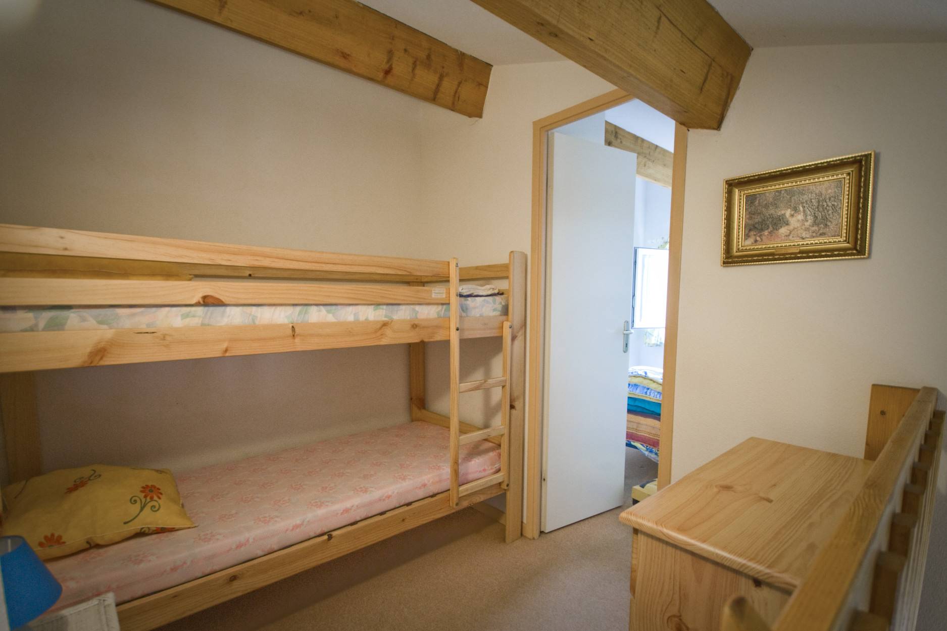 avec canapé-lit pour 2 personnes, coin cuisine entièrement équipé, salle d'eau avec douche et toilettes. Une chambre double, soit en haut ou en bas et une mezzanine avec 2 lits simples, soit séparément soit en tant que lits superposés. Toutes nos maisons ont une terrasse fermée avec barbecue en dur ou démontable et un parking.