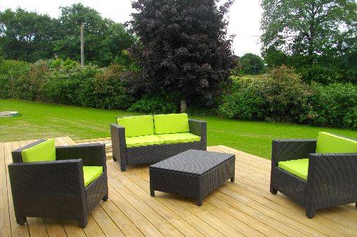 Une térrasse ensoleillée exposée plein sud avec son jardin.